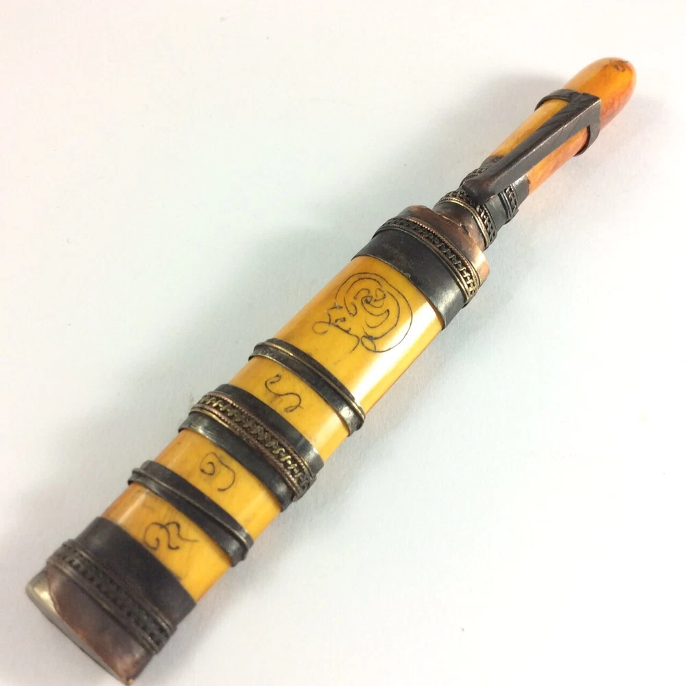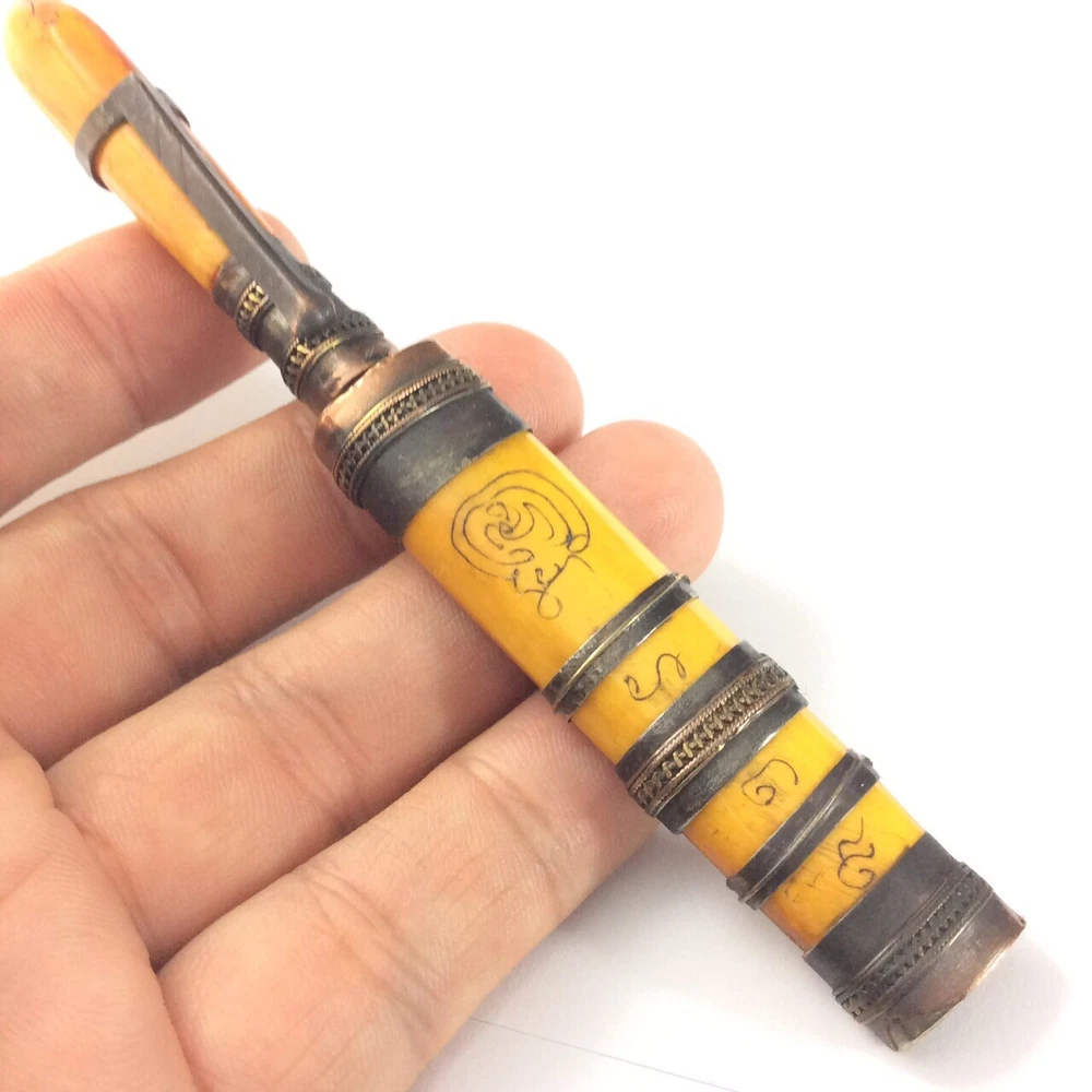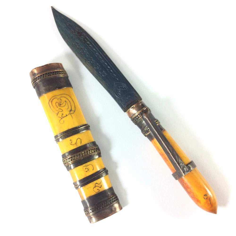 Luang Por DERM's Knife Amulet (มีดหมอ หลวงพ่อเดิม วัดหนองโพ) Amulet Name: Meed Mor LP Derm (มีดหมอ หลวงพ่อเดิม) Temple: Wat Nhong Pho, Nakhon Sawan Province (วัดหนองโพ, จ.นครสวรรค์) Material: Iron mixed materials Conditions: Good Conditions Size: 1.5 x 12.5 cms (approx.) Buddha knife' Meed Moh' monk amulet, you are bidding on buddha knife thai called 'Meed Moh' Buddhist prayed knife used for protect with the bad magic. This amulet to make potent by some magic from thai monk ' Lp Derm' from Wat Nong Pho temple at Nakornsawan province of Thailand. The handle made bone and bronze carving yahn. There is Buddhist the handle and the magic prayed word on the knife. There is the clip for attach to your shirt pocket. This Amulet , Fetish, Talisman will bring you Luck, Good things will unexpectedly happen to you. It also make you success in anything you hope for. This Amulet will bring Prosperity and ensure success in life. Believed to protect against evil. Invulnerable, Repel evil. Rich windfall wealth benevolent wealthy. Trade flourished, Subtle charm, Attractive for the opposite sex. It will make a fantastic gift for someone special or for a collector of Asian antiques. Keep it with you for Success Power or keep it in your house. Keep it with you for Evil Protection & Luck Builder Power or keep it in your house .This is a fabulous collector's items indeed. Buddha Amulet will bring you Luck, Good things will unexpectedly happen to you. It also make you success in anything you hope for. This Amulet will bring Prosperity and ensure success in human endeavors. Thai Buddhist Amulet Apinya Can Help And Improve More Better Your Life To Do Anything Smoother And Easy . Help the Owner More Get Better Anything That Your Wish And Hope . Help And Protection Owner Change Bad Situation To Good. FREE!! Shipping with registered mail WORLDWIDE with tracking number. If you have questions, feel free to write me on e B a y message. THANK YOU FOR SHOPPING