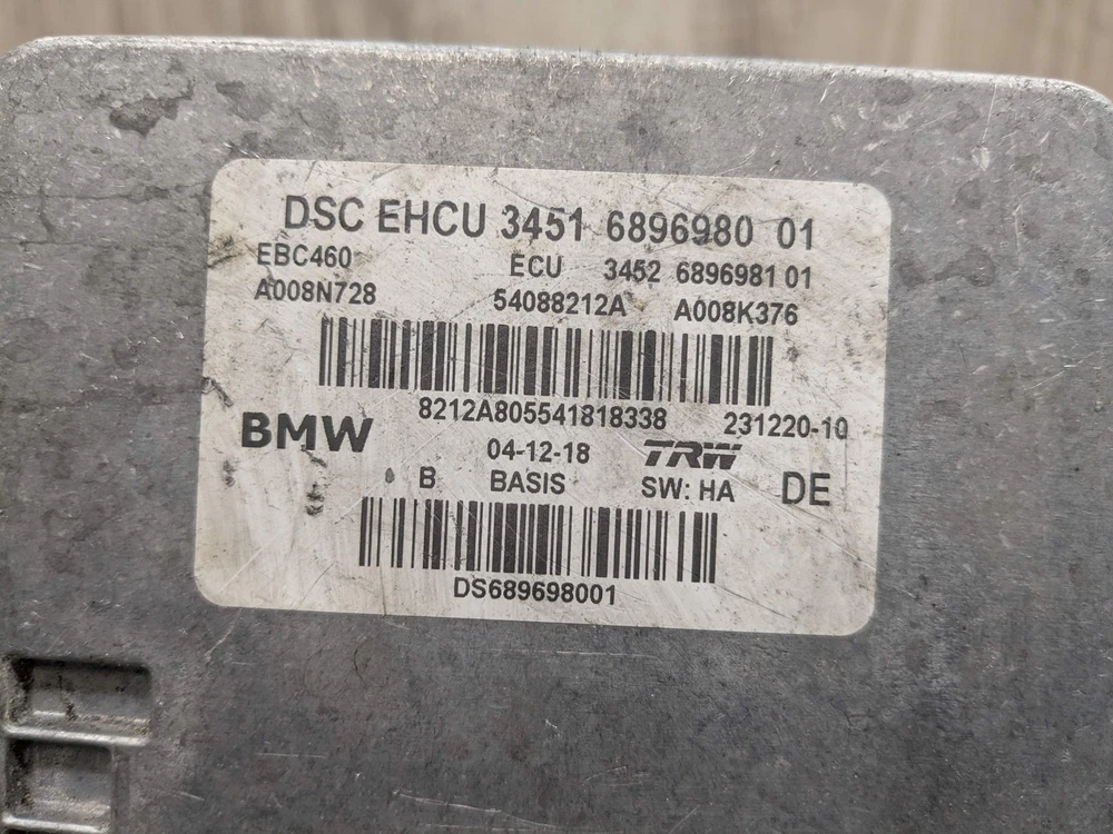 PRE-LCI OEM BMW G01 G12 G30 X3 DSC / DXC ABS Pump Computer Unit Anti Lock Brake SKU: 49640 Brand: BMW Condition: Used Notes: 30 Day Warranty! MPN: 6896980 Manufacturer Part Number: 34516896980 OE/OEM Part Number: 6896980 Interchange Part Number: 34526896981, 6896981, 34515A36079, 5A36079 We're on Instagram! Follow us! oe_mgarage All parts are used unless otherwise noted! Please understand that being that parts are used there may be some wear and tear & scratches etc. We cannot guarantee the condition of paint & or that paint color will be an exact match as yours. We try to show as much of the condition as possible through photos and notes! Original Car: 2019 BMW X3 Series: G01 Vin Number: 5UXTR7C58KLR44714 Mileage: 0 Engine: B46B20O0 Transmission: 1 Part number: 6896980, 34516896980, 34526896981, 6896981, 34515A36079, 5A36079 Exterior Color Paint Code: SOPHISTOGRAU BRILLANTEFFEKT METALLI (A90) SKU: 49640 Location: Z100 Notes: 30 Day Warranty! 30 DAY WARRANTY!! Warranty covers the cost of the item! It does not cover shipping or labor! Used condition items may have minor imperfections. Please look at pictures for details! And understand that this is a USED part after all! Compatibility is the responsibility of the customer to ensure!! Please feel free to reach out with any questions!!