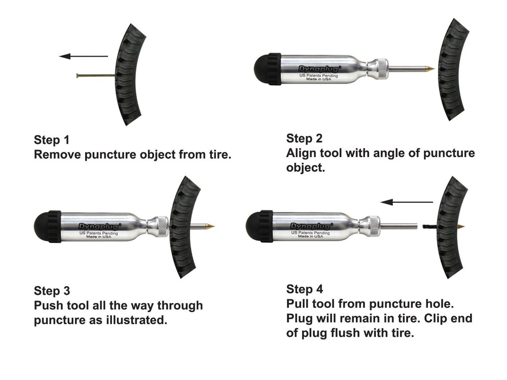 International products have separate terms, are sold from abroad and may differ from local products, including fit, age ratings, and language of product, labeling or instructions. USE: A DIY tubeless tire puncture repair Tool. Load and insert one repair plug to seal a puncture about 3/16 inch in diameter. A second repair plug may be inserted as needed and depending on the condition of the tire. Used to repair tubeless tires on cars, motorcycles, tractors, bicycles, and more. INCLUDED IN THIS DEAL: (1) Pro Aluminum tool, (8) Tire repair plugs, (3) Insertion tubes, (1) Air stopper, (1) Clearing attachment, (1) clear PVC twist storage container and (1) pipe cleaner. Limited Lifetime Warranty. SIZE: 5.42” x .875” WEIGHS: 3 OZ. Made in USA. COMPANY INFO: is based in Chico, Butte County, California.