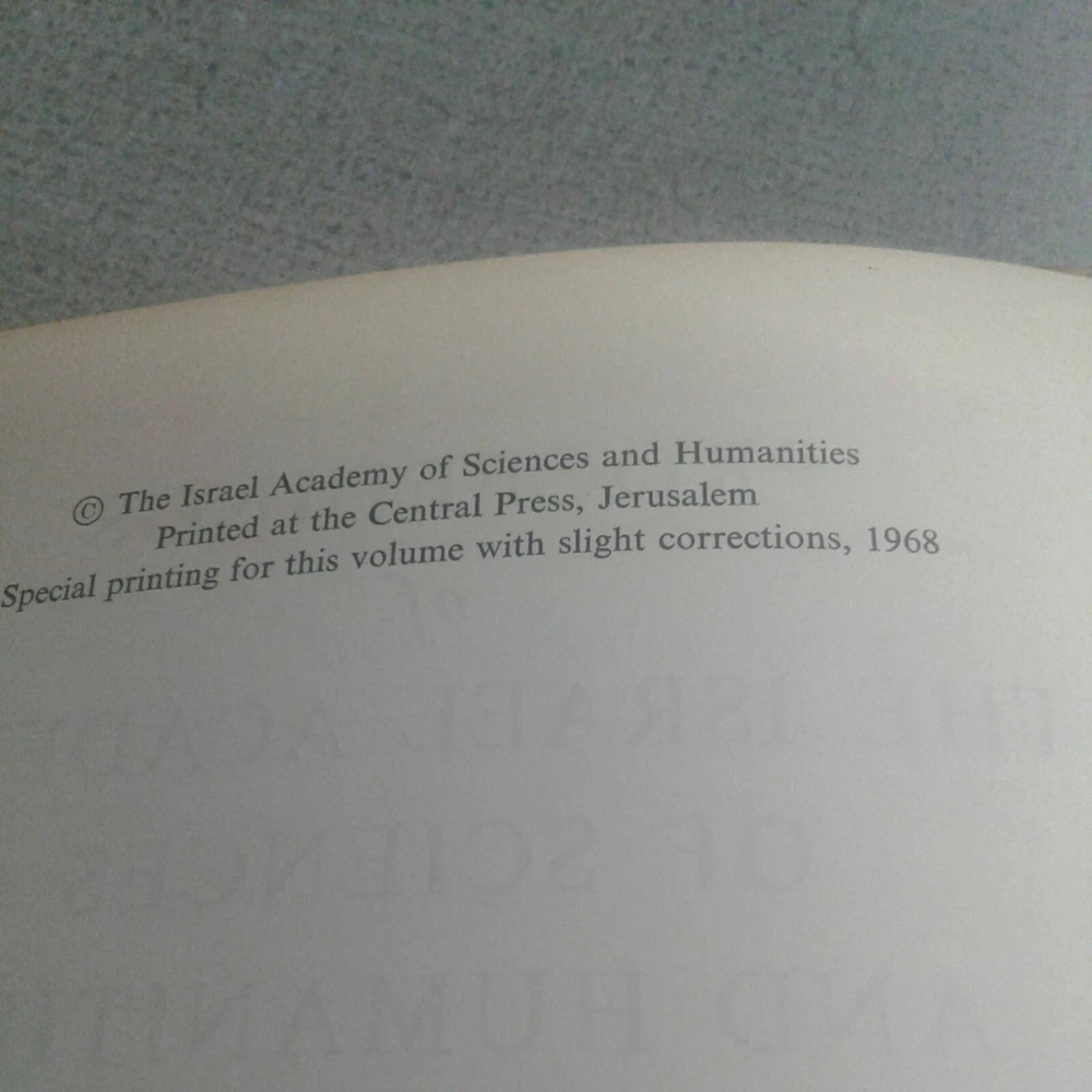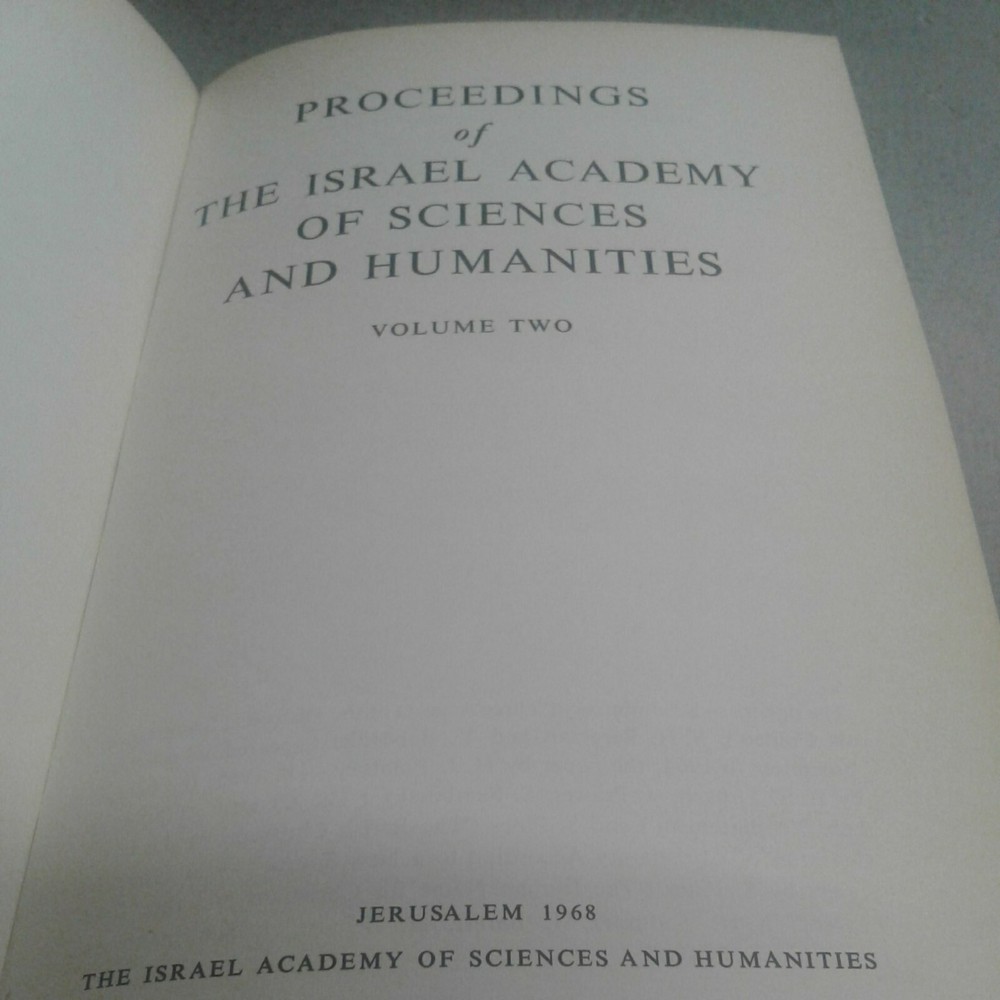 PROCEEDINGS OF THE ISRAEL ACADEMY OF SCIENCES AND HUMANITIES VOLUME TWO.I bought the book in a bookstore in jerusalem israel. Book box 197