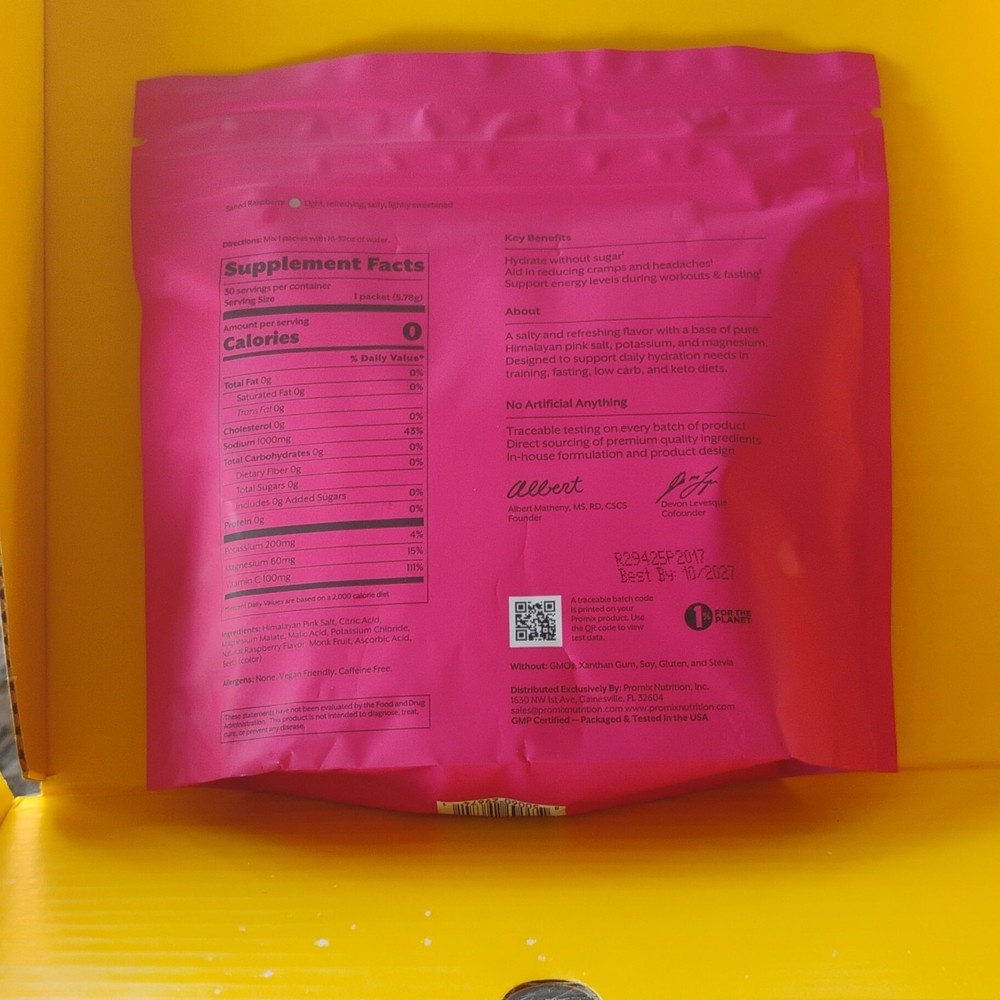 PROMIX Electrolyte Drink Mix Salted Raspberry Vegan Powder Himalayan Pink Salt