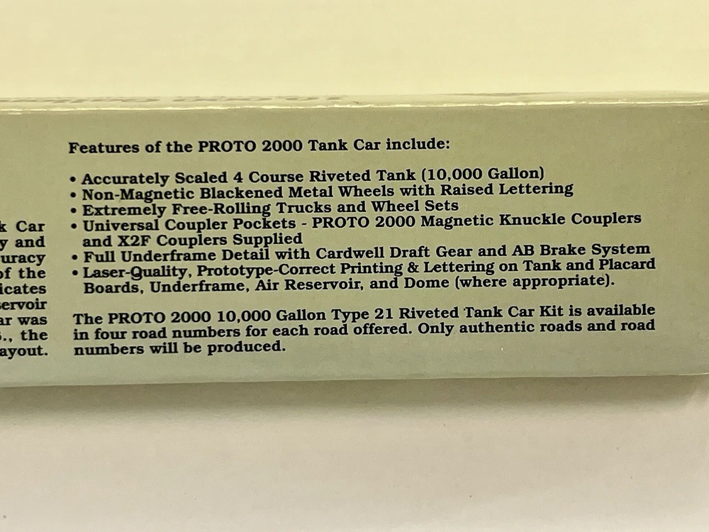 PROTO 2000, HO Kit# 23132( Assembled). Type 21, 10,000 Gallon Riveted Tank Car, MPLX#1724 PRE-ASSEMBLED model kit READY to RUN. Please view photos for condition and contents