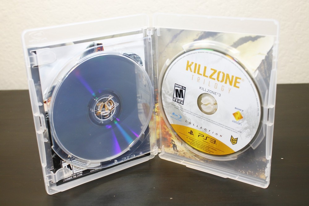 PS3 Killzone Trilogy Collection Game CIB Clean Mint Discs Shooter Tested Both game discs are in mint condition. Insert included. The artwork looks great and the case has an almost like new finish and the inner tray is intact and functional and has minor shelfwear. Overall this game was well taken care of.