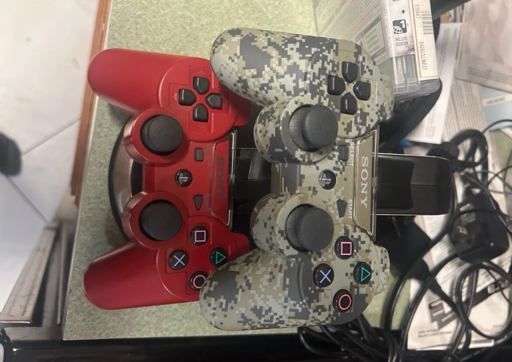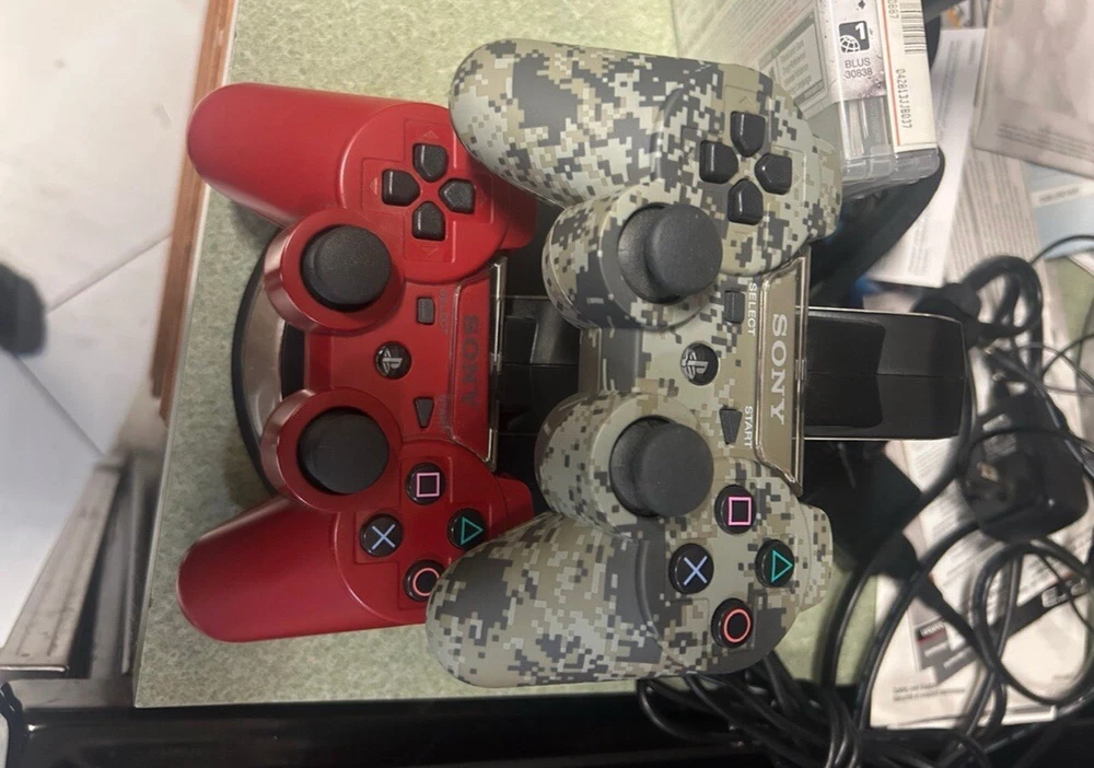 PS3 PlayStation 3 Super Slim Red God Of War Edition Bundle 5 Games Move One of the rarest and best PS3 consoles out there Everything is barely used in great condition Camo Controller and Red wireless controllers with Charging stand Ps move controllers and dock with camera Power cords and hdmi included plus 5 games all 3 God of War plus Acension Includes paperwork