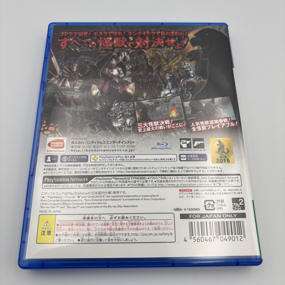 PS4 GODZILLA VS BANDAI NAMCO Sony PlayStation 4 Japan Import Game Status: USED Note Please read the following before purchasing. PS1, PS2, 3DS, Wii, Wii U, GameCube, Nintendo 64, SNES (Super Nintendo), NES (NES), Game Boy, Xbox, Xbox 360, Sega Saturn, Dreamcast, The mega drive is area locked. If you don't have a Japanese game console, you can't play in regional lock. Region free for PS3, PS4, PS5, PSP, PS Vita, DS, DSLite, SWITCH and Gameboy Advance. The case may be dirty or cracked. The CD may have scratches that will not interfere with playing the game. Shipping Standard shipping: Ships by FedEx or DHL (with tracking number) Depending on the region, it may be shipped by UPS or EMS. It will arrive in 5-10 days after shipping. Economy shipping: Shipped by e-packet (with tracking number) Depending on the region, it may be shipped in small packets. It will arrive 14 to 21 days after shipment. Handling time: Ships within 10 business days of purchase.
