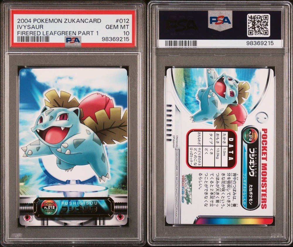 PSA 10 GEM MINT Ivysaur #012 Carddass Zukan F-Red L-Green Bandai Pokémon POP 5. POP 5 as of 11/27/24. Please reach out with any questions and we would be happy to assist you. Returns are not accepted. You will receive the exact graded card pictured. Please see high resolution scans. Purchase of this item signifies agreement that Grade, Actual Condition and expected standards all match. Please see PSA website for more info. Shipping info: All graded cards are shipped securely in bubble mailer and cardboard box; regardless of price. Please reach out with any concerns before contacting ebay and we'd be happy to assist you. Please note that due to inventory accuracy, purchases will not be cancelled before or after shipping. Please reach out with any questions before purchase and we would be happy to assist you.