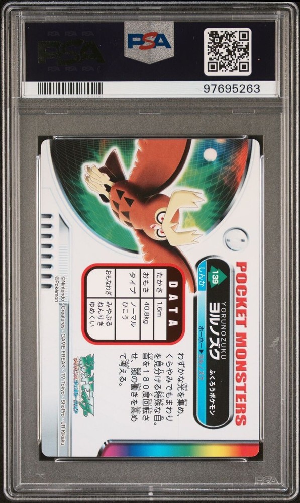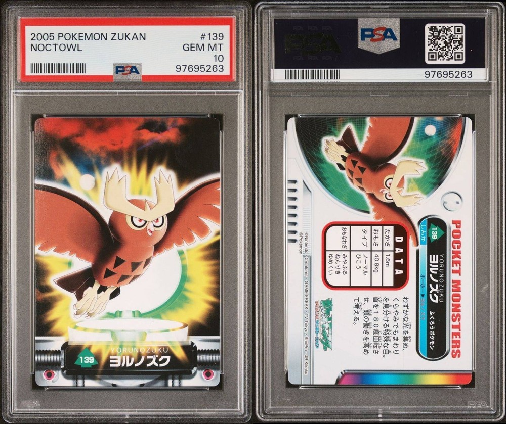 PSA 10 GEM MINT Noctowl #139 Carddass Zukan Advanced Gen. Bandai Pokémon POP 2. POP 2 as of 11/27/24. Please reach out with any questions and we would be happy to assist you. Returns are not accepted. You will receive the exact graded card pictured. Please see high resolution scans. Purchase of this item signifies agreement that Grade, Actual Condition and expected standards all match. Please see PSA website for more info. Shipping info: All graded cards are shipped securely in bubble mailer and cardboard box; regardless of price. Please reach out with any concerns before contacting ebay and we'd be happy to assist you. Please note that due to inventory accuracy, purchases will not be cancelled before or after shipping. Please reach out with any questions before purchase and we would be happy to assist you.