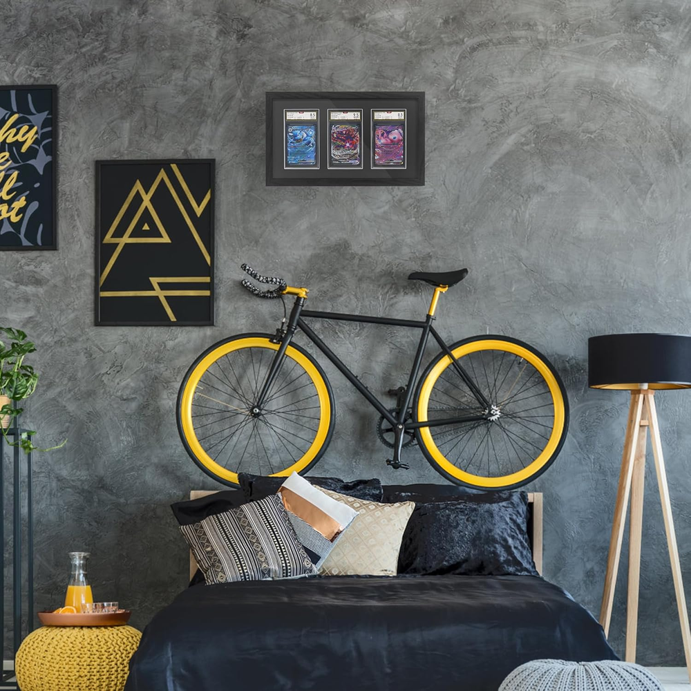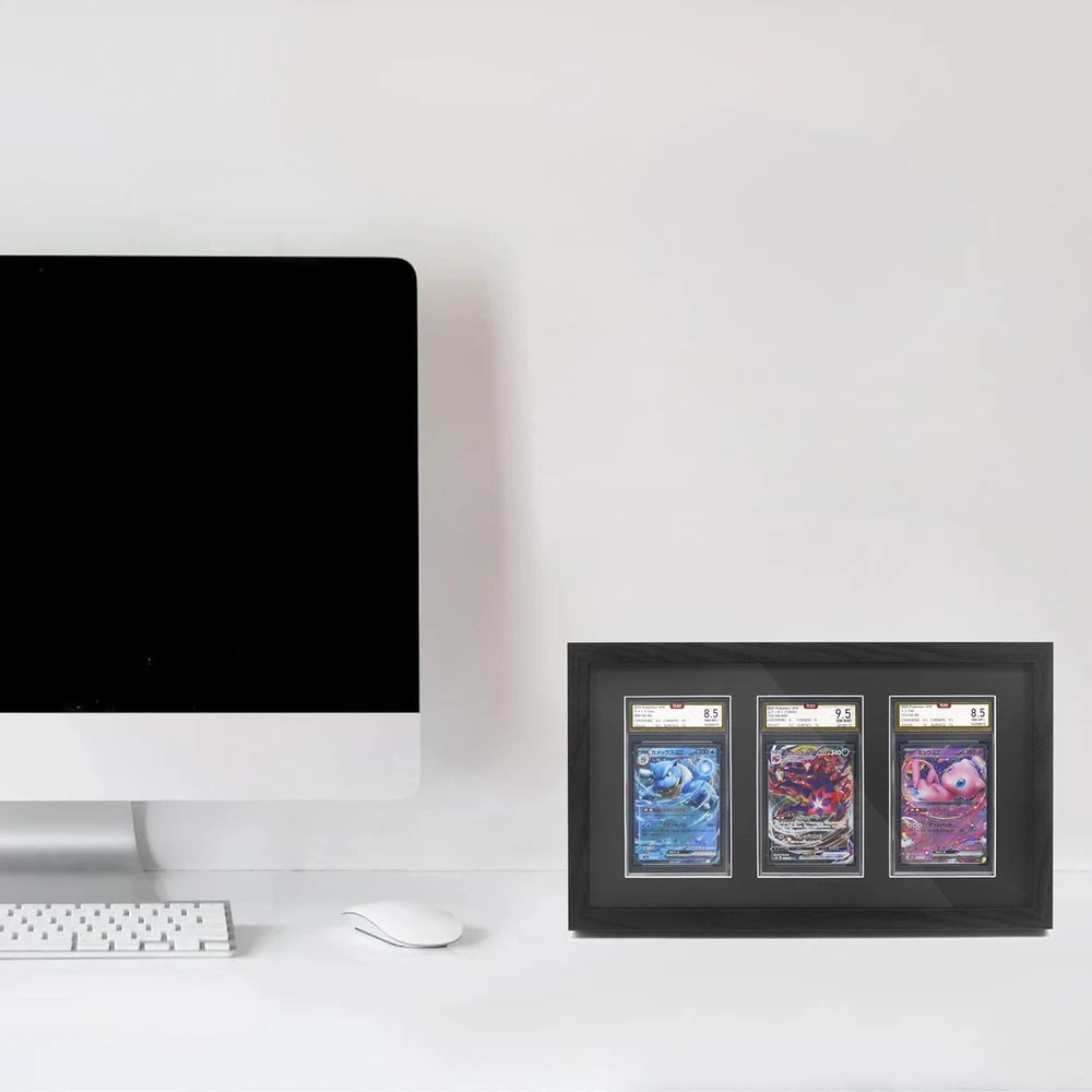 PSA Graded Card Display Case Wall Mount Holds 3 Black Frame