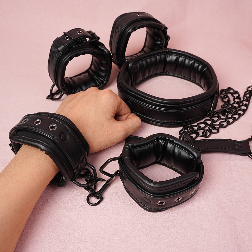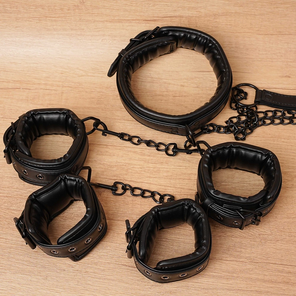 Discreet Packing : 1. 100% discreet shipping guarantee on package and no wirting on the package. 2. Nothing written on the packaging or label - It is impossible to tell what is inside the packaging. Feature: Condition:100% Brand New Size: free size fits for most Material: Good quality PU Leather/Real leather Color: Black(As picture shown) The Chains on the cuffs are all removable. Completely safe and entirely satisfying to the touch Healthy and non-toxic products. Size: Handcuffs Length: 23cm, adjustable: 16-26cm Anklecuffs Length: 28cm, adjustable: 21-31cm The metal chain between cuffs is about 15cm long. Collar Length: 39cm, adjustable: 31-43cm Traction chain length of about 58cm, the handle is about 16cm long. Notes: 1. Due to the difference of light and screen setting, The color of the object may be slightly different from the images. 2. Manual measurement, for measuring methods and technique is different, there may be 1-3 cm error. 3. To protect your privacy, all items will be carefully packed in normal packaging without return address or labeling ambiguous content. Contact: Please contact us first if you have any questions. Thank you!