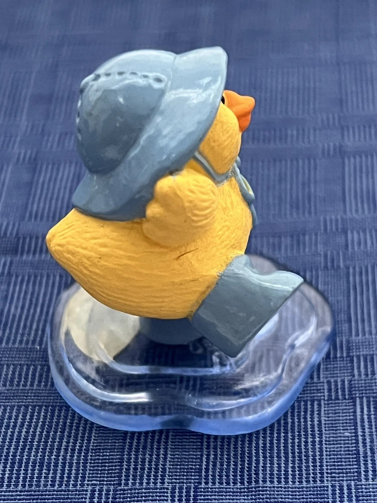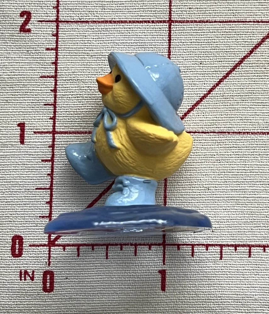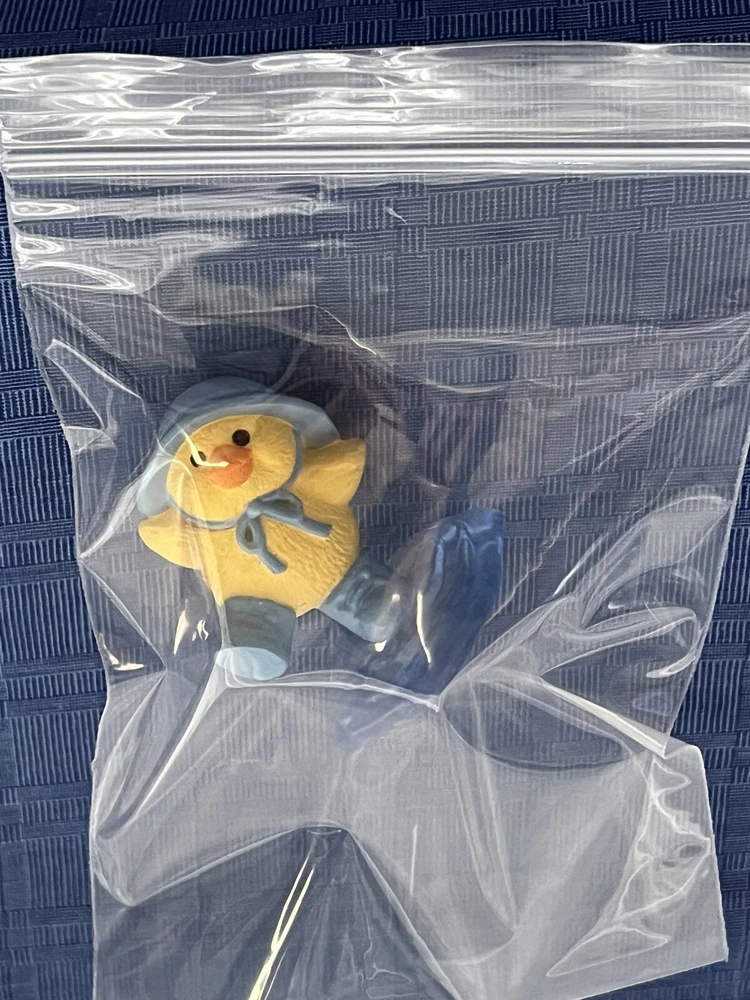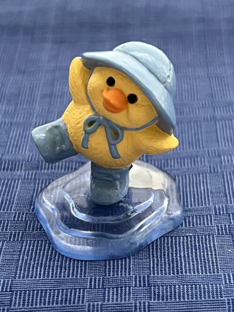 Listing for a Hallmark Merry Miniature PUDDLE DUCK from the 1991 Hallmark Easter/Spring Merry Miniatures Shelf Collection (manufactured in 1990). This miniature depicts a small yellow ducky dressed in a blue rain hat and boots splashing away in a puddle of water. At just 1.5 inches inches tall, it is very cute and perfect to display at Easter, spring or any time of the year with other miniatures. This would look great on a desk, shelf, or in a miniatures shadow box. New and never displayed. Gold sticker still intact. My mom had over 500 miniatures and I found most of them still in the pink Hallmark bags. There are 50 tubs of Hallmark and other vintage stuff I am sorting and listing daily. Thank you for checking it out. Shipped USPS Ground Advantage and shipping will automatically be combined when additional items are placed in your cart. Put several miniatures and pay just one shipping fee.