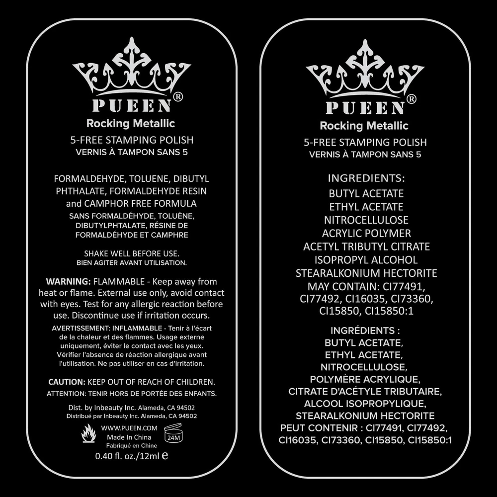 PUEEN Rocking Metallic Stamping Nail Polish Nail Art Color - Set of 12 Metallic