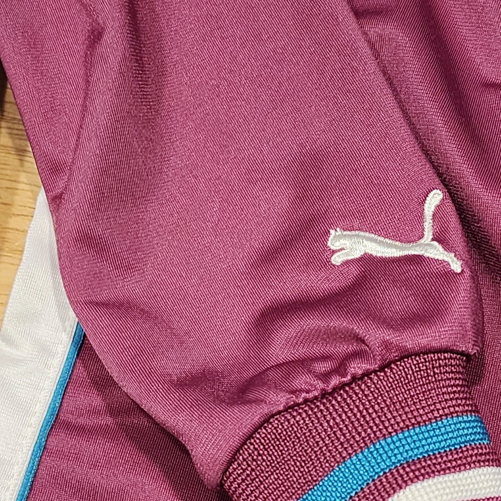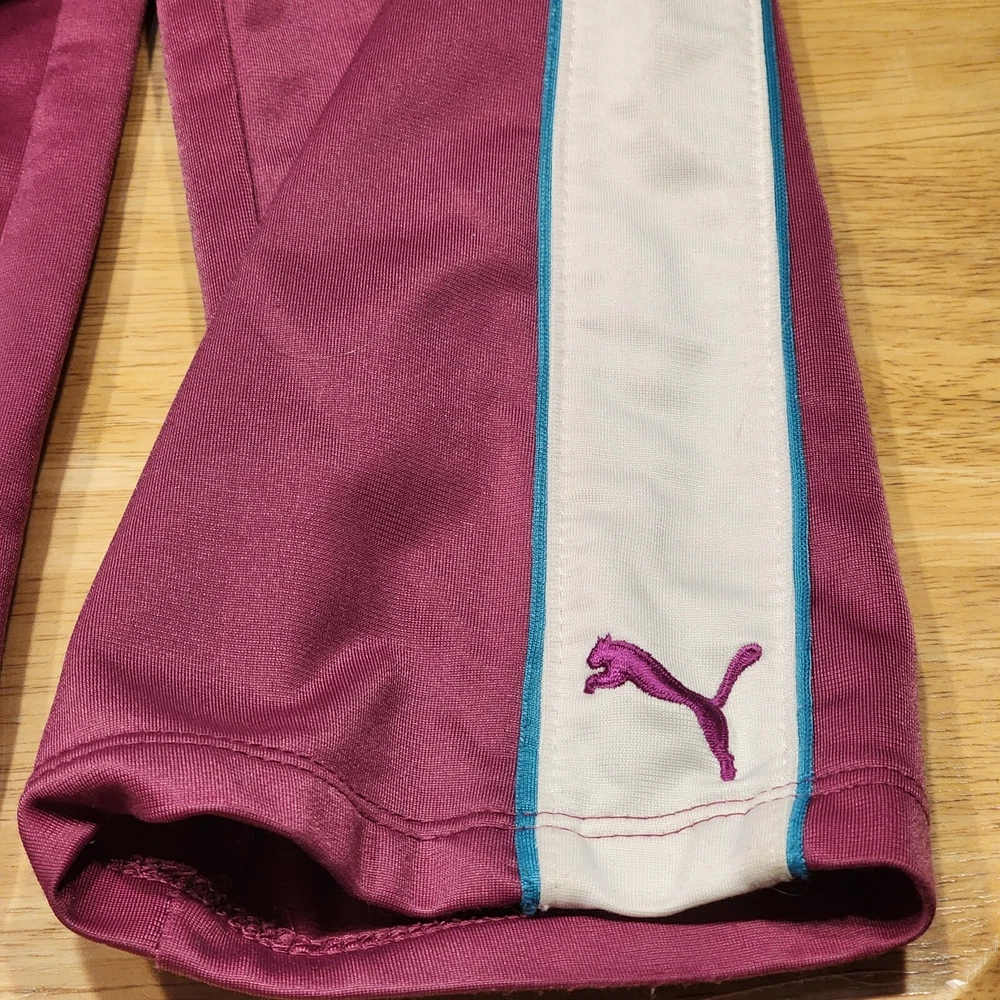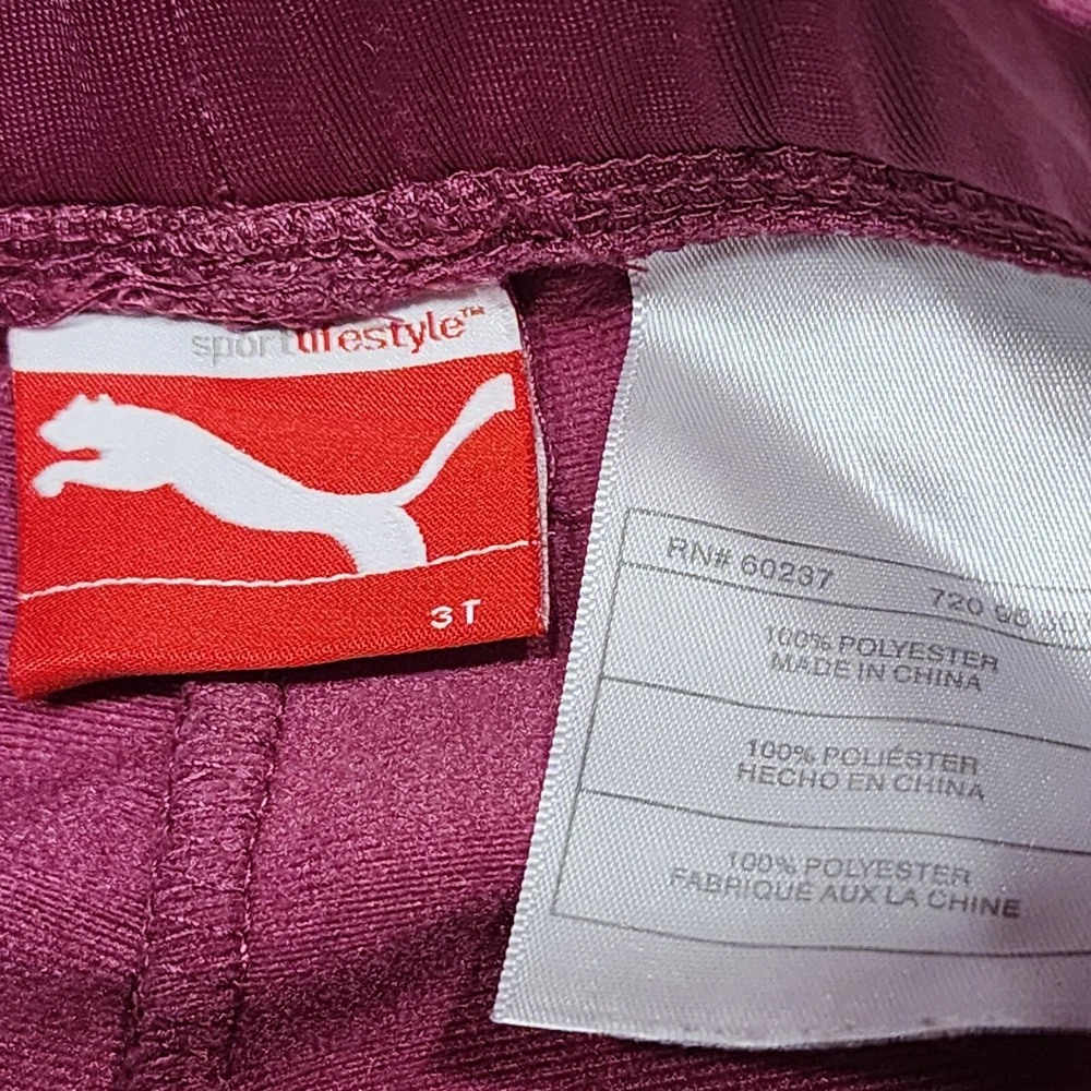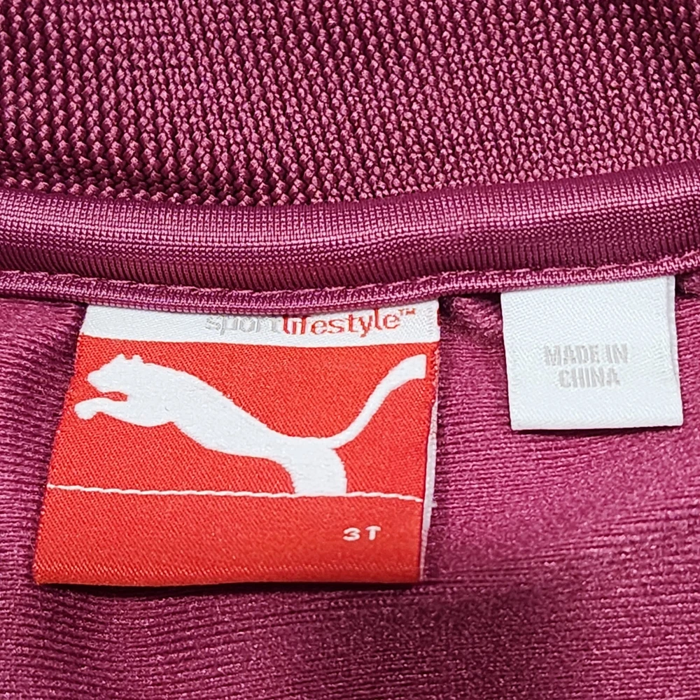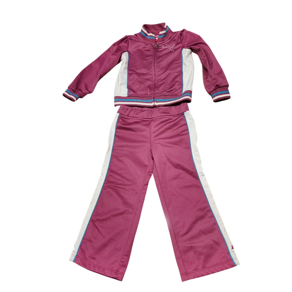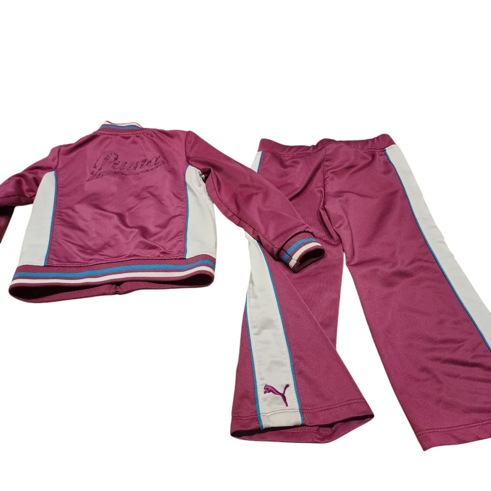 Dress your little one in comfort and style with the PUMA 2 Piece Track Suit, a perfect blend of functionality and casual wear. This adorable set includes a full-zip jacket and matching pants, both designed with a playful purple hue that's sure to stand out. The jacket features a convenient full zipper closure and pockets for practicality, while the pants offer a snug fit for active toddlers. Crafted with a blend of cotton and polyester, this outfit is both soft and durable, making it ideal for the energetic movements of little athletes. The set boasts PUMA's iconic 3 Stripes and logo accents for a touch of brand prestige, and the long sleeves make it suitable for cooler seasons like fall, spring, and winter. Whether it's for sports activities or casual outings, this track suit is a versatile addition to your child's wardrobe.