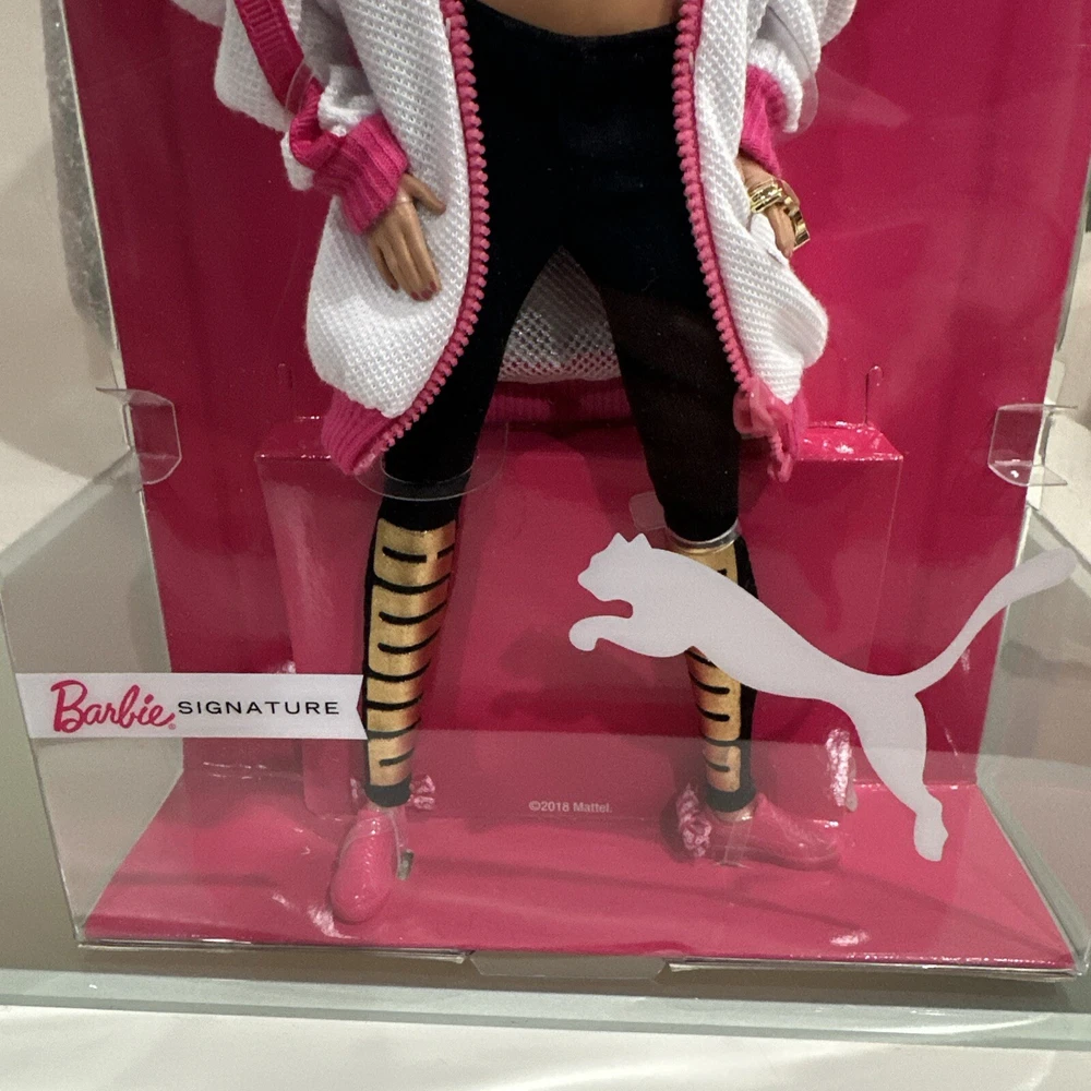 One MIB, NRFB Barbie | Puma collaboration with all her signature accessories. She is part of the Barbie Signature Series and created in 2018 by Mattel. Doll is in mint condition and has never been removed from the box. Interior packaging is in mint condition. Outer packaging has some very slight wear. The attention to detail is amazing; notice her Puma bling! Please note that I do my best to describe all items, especially vintage items. Please view photos and do not hesitate to ask any questions; I am happy to communicate with you. Please consider leaving friendly feedback when you receive your item, and I will do the same for you. Thank you