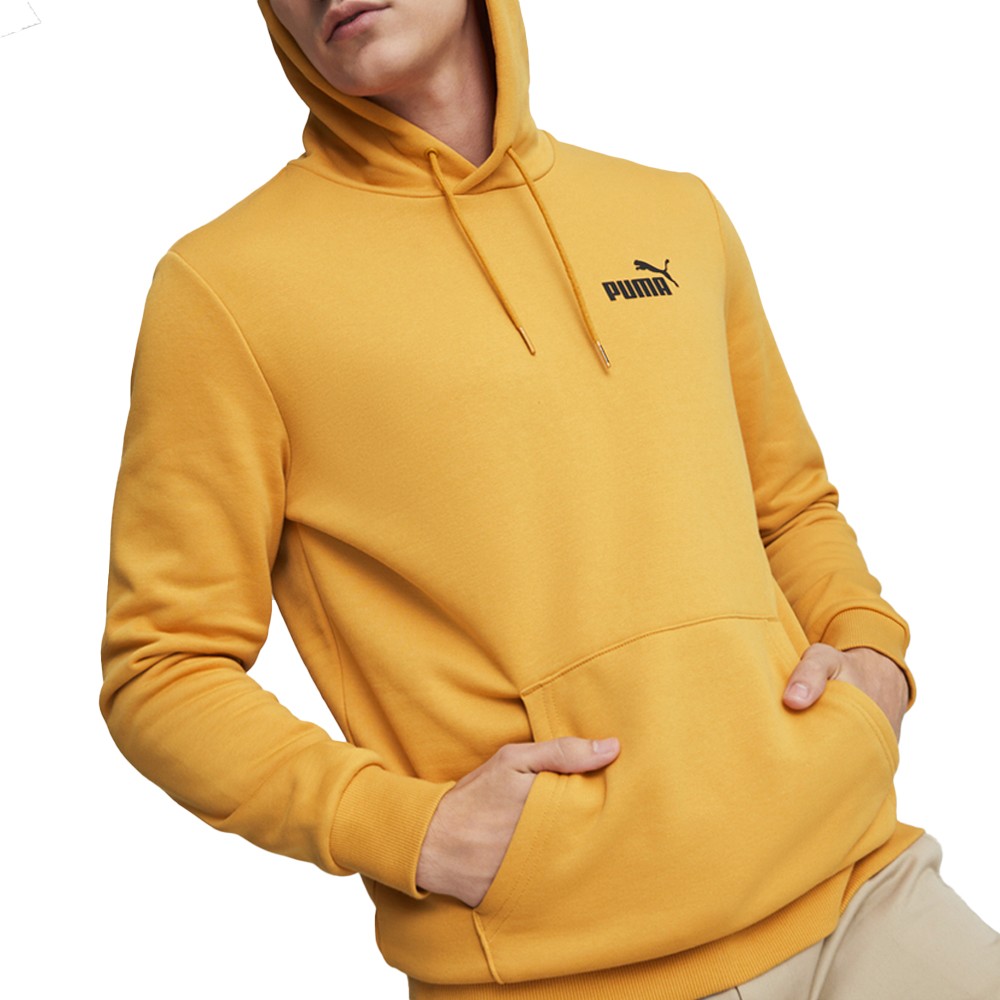 Essentials Small Logo Pullover Hoodie Product Details 66% cotton, 34% recycled polyester Logo print on left chest Adjustable drawstrings Kangaroo pocket This hoodie is as classic as it gets. The timeless, understated look gets an eco-friendly twist with recycled fibers and support for the Forever Better Initiative, for fashion that feels as good as it looks. Additional Details Color: Yellow Occasion: Casual Gender: Mens Age: Adult Brand: Puma