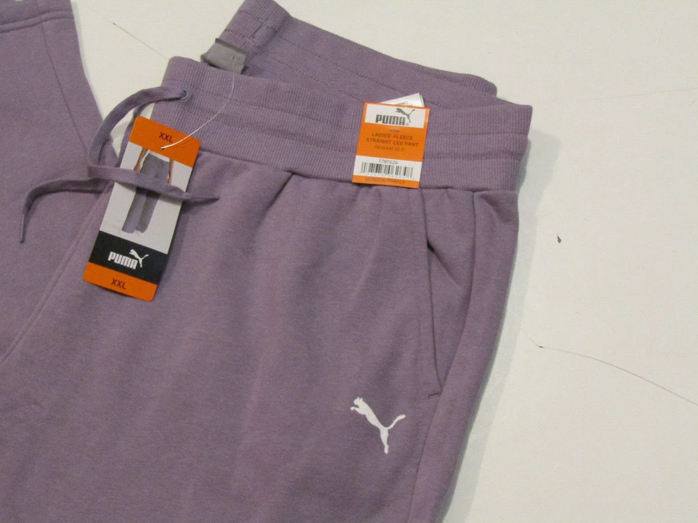 This pair of womens pants are New with Tags! ***A stock photo from our inventory has been used to help save time. You will receive the item described in the size listed below!*** PUMA Made by Puma, this pair of sweatpants is a great find! They are Purple colored in the Ladies' Fleece Straight Leg Pant style. They have 2 sides pockets and no back pockets. They have an elastic waistband with a drawstring for the perfect fit! Made of 100% Cotton. Perfect for exercise or lounging around the house! Size: XXL Waist: 41" Rise: 14.5" Inseam: 30.5" I do my very best to give accurate measurements. If you have any questions on the measurements, or anything else, please ask! Shipping to the United States is FREE! Shipping outside the United States is done through eBay's Global Shipping Program Check out my other items because I will always combine shipping! Be sure to add me to your favorites list ! Please submit payment in 7 days of the end of this auction. If payment hasn't been received and contact has not been made in those 7 days, eBay will be notified and negative feedback left. If you have a question, please ask prior to bidding because I am happy to answer questions you have! If you are an International bidder, any and all customs charges are the sole responsibility of the buyer and the seller assumes this is understood upon purchase. Thank you and have a great day! 173