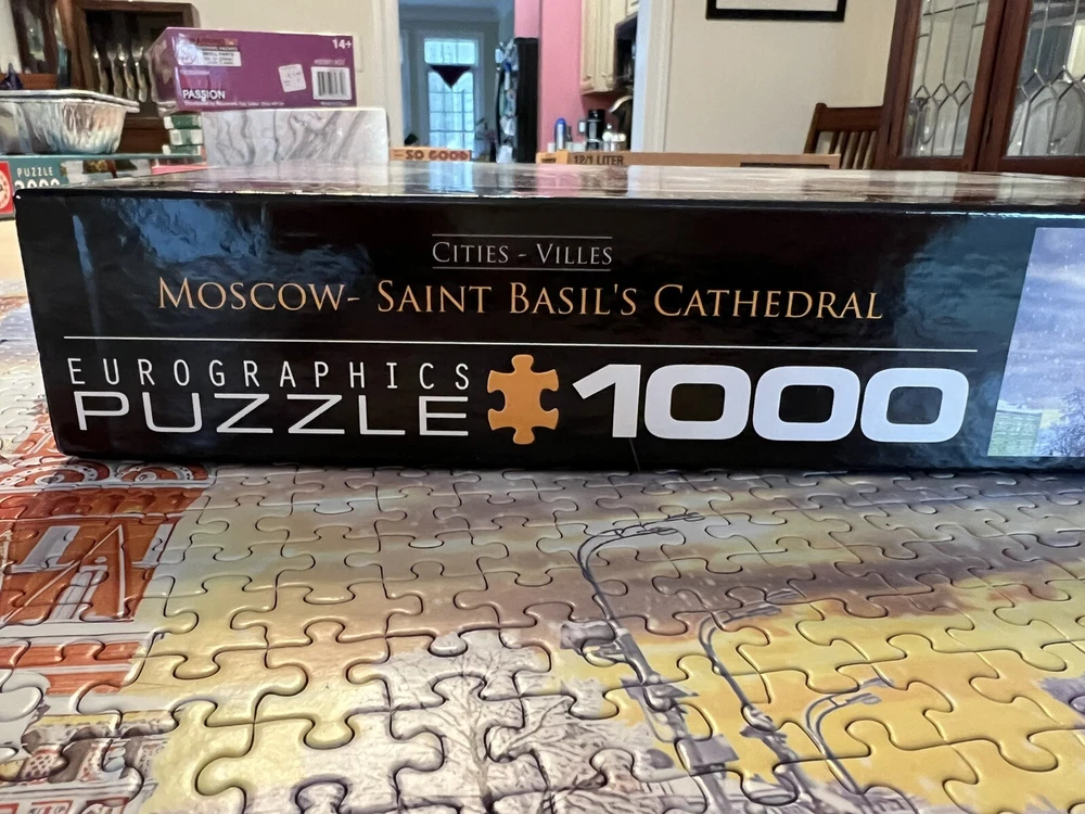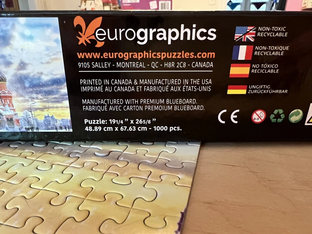 PUZZLE DESCRIPTION : Jigsaw Puzzle - 1000 piece - Moscow - Saint Basil's Cathedral - Eurographics - 19.25" x 26.625" (48.89cm x 67.63cm) CONDITION : Excellent used condition. Put together once. PAYMENT : Payment is due within 3 days of the end of the auction. SHIPPING : Shipping is via US Post Office ONLY. RETURN POLICY : I list items to the best of my ability and try to describe each item as best as possible. The items I sell are either my own or purchased at thrift shops/garage sales/etc, therefore I may not know the history to each item. Unless stated new, they are pre-owned items. I cannot guarantee items I sell are from smoke/pet free homes originally. My home is smoke free, however, I do have pets. All preowned items are laundered prior to listing. Items may be returned for a refund of bid price only (I will not refund any postage). Refunds will be issued once I receive the item back in the same condition as it left. If you have any problems please email me before leaving feedback. Please check out my other items - I will gladly combine shipping! Email me if you have any questions.