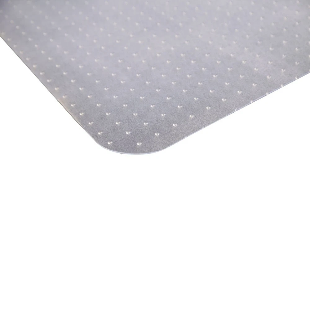 Introductions: Ideal for home or office, the Floor Chair Mat protects floors from damage caused by chair legs or rolling casters. The chair mat creates a protective barrier and it won't mark or damage the floor or tiles. like hardwood, tile, laminate, vinyl, it easy to roll a chair on and off, whether rolling from a desk to a file cabinet or transitioning from one workstation to another.Features: Our office floor chair mat rectangular shape with extended lip for under-desk coverage, Designed for use on all hard floor surfaces such as tile, laminate, hardwood etc. slightly coated underside prevents mat from slipping. Our floor chair mat made from long life PVC, 2mm thick, The chair mat has the characteristics of high strength of anti-impact, good toughness, moisture-proof, Free Shipping Over $49.99* Details PVC Chair Floor Mat Studded Back with Lip Product Description: Introductions: Ideal for home or office, the Floor Chair Mat protects floors from damage caused by chair legs or rolling casters. The chair mat creates a protective barrier and it won't mark or damage the floor or tiles. like hardwood, tile, laminate, vinyl, it easy to roll a chair on and off, whether rolling from a desk to a file cabinet or transitioning from one workstation to another. Features: Our office floor chair mat rectangular shape with extended lip for under-desk coverage, Designed for use on all hard floor surfaces such as tile, laminate, hardwood etc. slightly coated underside prevents mat from slipping. Our floor chair mat made from long life PVC , 2mm thick , The chair mat has the characteristics of high strength of anti-impact, good toughness, moisture-proof, flame retardancy and insulation, to prevent cracking or shattering. The textured wear resistant pvc chair mat allows your office chair to move easily without skidding This home office floor mat promotes ergonomic posture by allowing you to roll between tasks. Firm surface mat, chair rolls easily around. Perfectly textured easy glide top keeps rolling stable yet effective. Leg fatigue a thing of the past once you lay this mat under your chair. Roll around and reach wherever you need without any stress. Desk chair mats can be used in your home office or at work to create a more stable, comfortable, safe working environment Specifications: MaterialPVC Dimensions(47.24 x 35.43 x 0.09)" / (120 x 90 x 0.22)cm (L x W x H) Weight5.73 lbs / 2.6 kg ColorTransparent Note This mat is only suitable for tiles, concrete floors and carpets. It cannot be used directly on wooden floors, otherwise the floor will be scratched by nails on the mat. Package Includes: 1 x Chair Pads with Nail