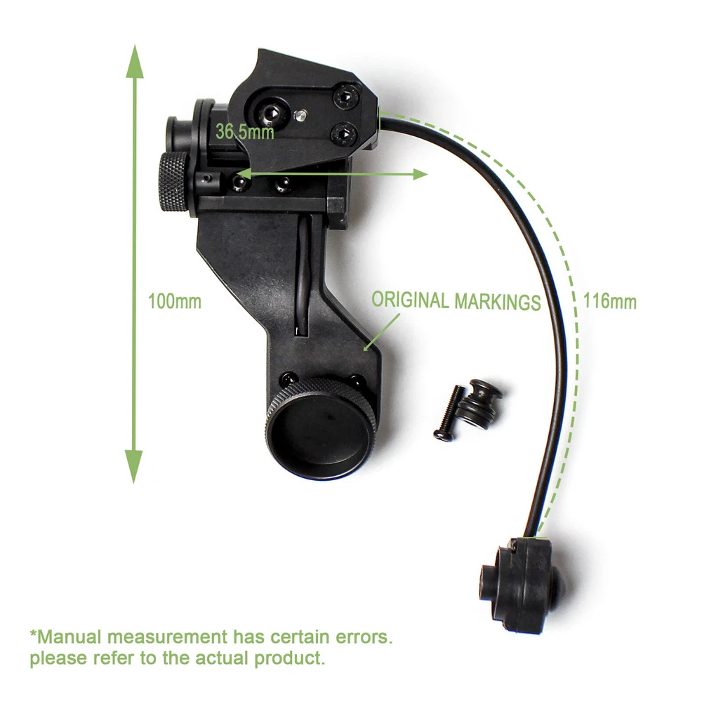 Description: Durable connection for mounting an AN/PVS-14 Can be used with a Lanyard for secure attachment Mechanical Adjustment is durable and ergonomically positioned for easy one-handed operation Maintains a very low profile stance on a user’s helmet Flat Matte finish for covertness in tactical conditions Fe ature : Material: Aluminum/Polymer Mount Style:Dovetail The AN/PVS-14 J-Arm Auto ON/OFF with dovetail provides a durable connection for mounting an AN/PVS-14 to a Helmet Interface Mount. It can be easily mounted and dismounted from the AN/PVS-14 by means of a thumb screw, and allows the operator to select the height and angle for comfort. The AN/PVS-14 J-Arm Auto ON/OFF offers the ability to make fine adjustments to customize the position of the device for proper eye position and relief. Packsge included: 1x PVS-14 AUTO ON/OFF J-Arm Note:It needs to be used in conjunction with the original product to be powered on, and any other replicas, including SOTAC products, are also not applicable. T i p: Du e to the lighting effect, there may be color difference in the pictures taken. Q&A: Q: Why does the product not include batte ries? A:Because batteries belong to the transportation of dangerous goods in international logistics. Q:Why hasn't logistics information been updated for a long time? A: Dear, if the logistics information has not been updated for a long time, you can check the logistics information on this website: https://www.17track .net/en/.Or contact us directly. Q: The logistics information shows that the package has been delivered, but I have not received it. What should I do? A: Dear,please contact us immediately and explain the reason, we will help you obtain the package. Q: What should I do if I have any confusion about the product or logistics? A: Dear,please contact us directly, and we have a specialist to answer your questions. If you receive a package and have any questions or other issues with the item, please contact us by email in a timely manner, and we will provide a satisfactory solution. Please do not submit return requests or leave negative reviews at will.