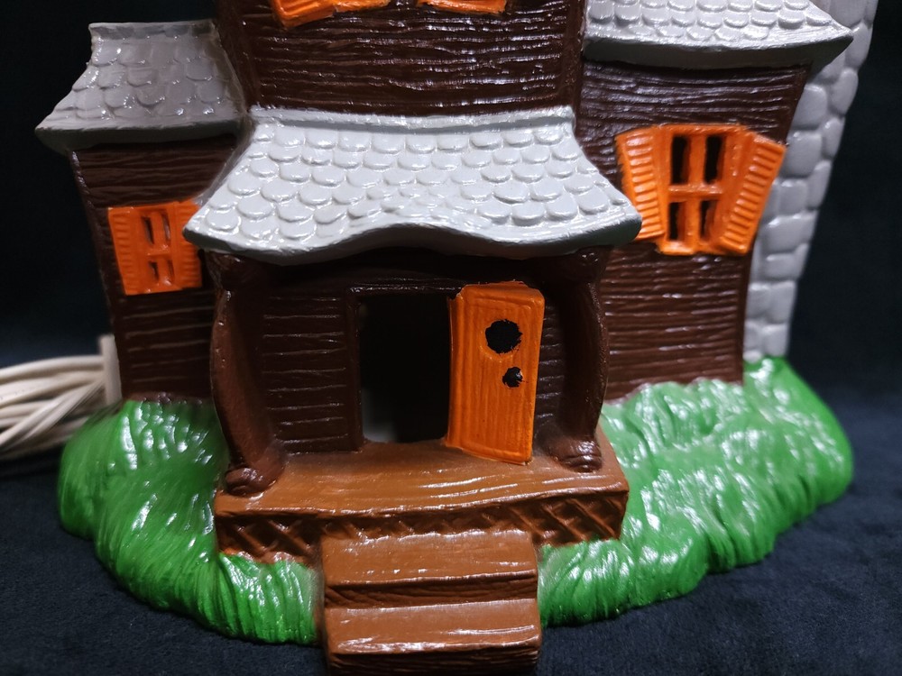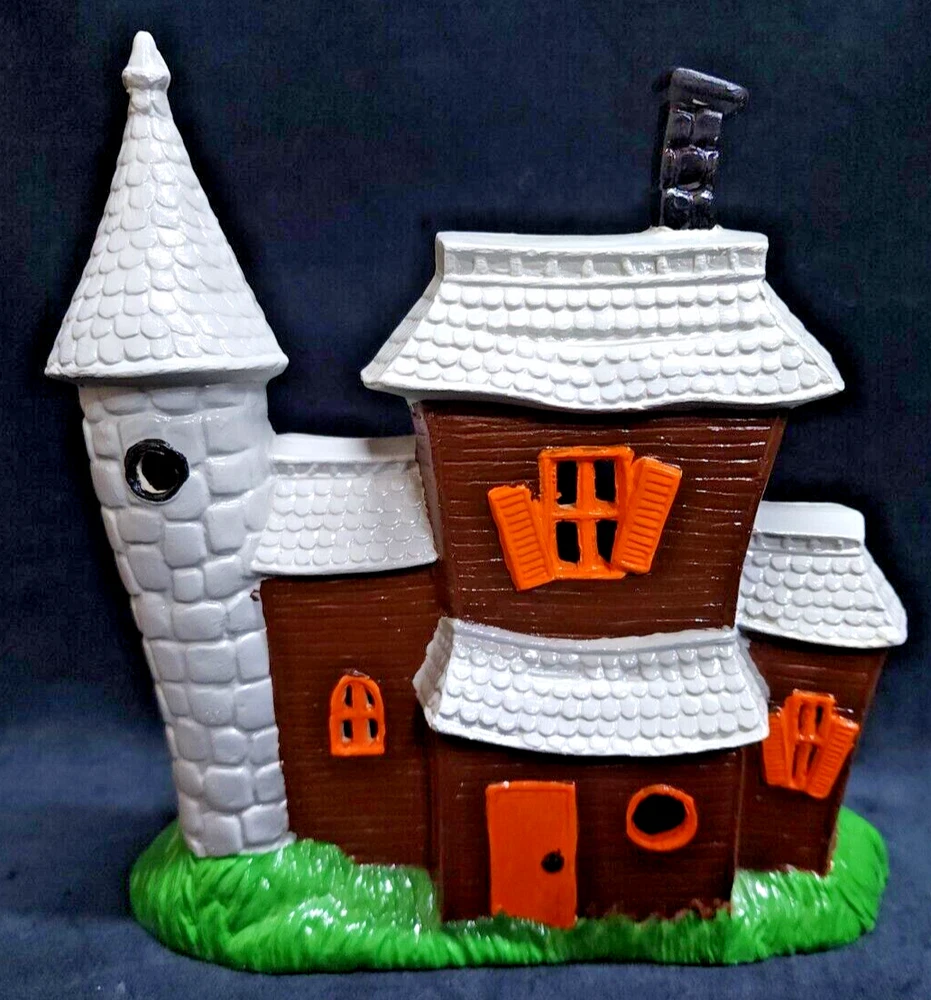 This is for a Used but in Excellent condition Pacific Rim Ceramic Hand painted Light Up Electric Scary Haunted House Halloween Decor which comes with a very beautiful Hallmark Keepsake Punkin' Kitty in Cupcake Ornament decor with box. The Haunted House measures 8.5"H x 8" w x 3.5"d Comes with an aftermarket Light switch, which is missing its light bulb, sold separately and not included. Please look at the images for better description of this item. Track Page Views With Auctiva's Counter