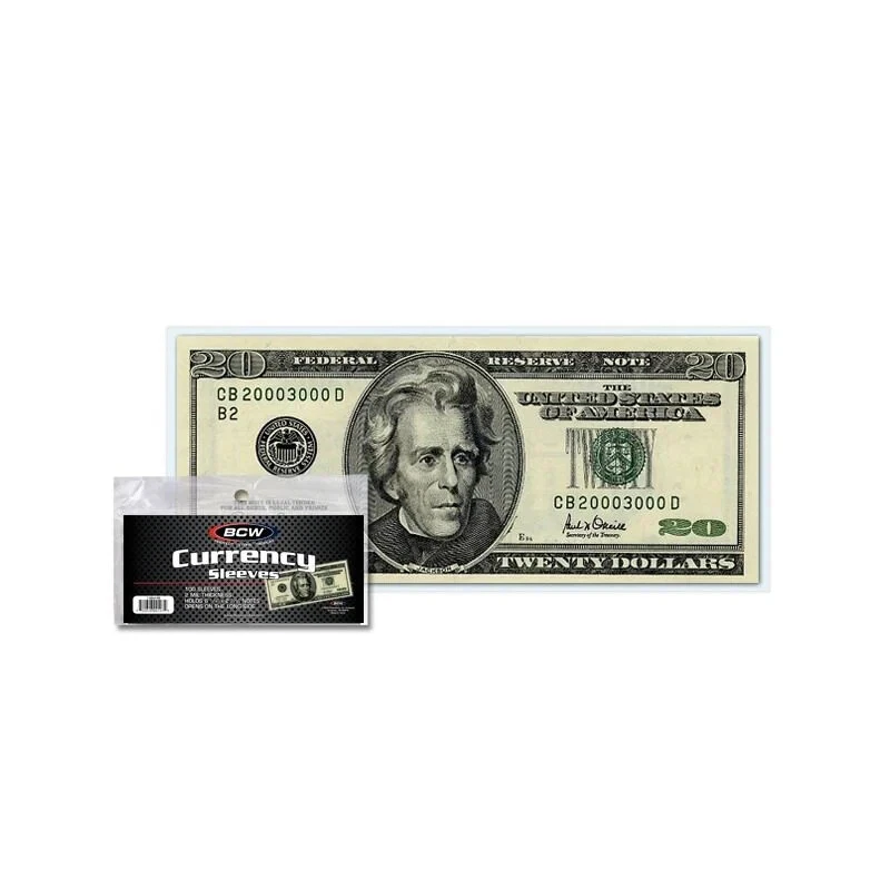 BCW Currency Sleeves - For Standard Bills 1 Brand New Pack of 100 Sleeves Hobby Supplies Info Manufactured by BCW Holds a standard sized US note Archival Safe, crystal-clear 2 Mil Polypropylene Acid and PVC Free Exterior Dim 6 1/4 x 2 11/16 Protect Your Valuable Collection BCW Currency Sleeves are an acid free, archival quality product made of crystal clear polypropylene. Use this item to protect and store your collectible currency Visit Our Store - Browse Our Full Inventory All your storage and protection supplies in one place. We carry a full line of collecting supplies, add on additional items, mix and match different items. When you check out and pay for all items with a single payment, we will combine all of your items into a single shipment with the total shipment charges. Please be sure to combine all items into a single order/payment. Shipping charges for most items and orders will be calculated out upon checkout, but feel free to "request total from seller" or request a revised invoice prior to payment, and we will adjust your shipping charges to the appropriate USPS, UPS or FedEx rate. Brand New, Top Quality Supplies from the Leading Manufacturers. Quality and Satisfaction Guarantee! - We accept returns on all items for any reason . Purchase with confidence. Need Supplies? We Carry Everything! 100,000's of cards In stock now! Your First Stop For Hobby Supplies, Trading Cards and Sealed Boxes Shipping Across The World Since 2009! For combined purchases and orders for multiple different items, please add all items to your ebay cart to estimate shipping. Shipping charges will be calculated based on the total size and weight of your order.