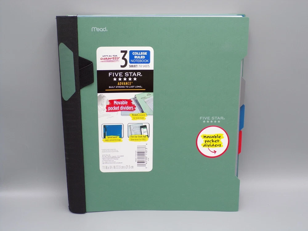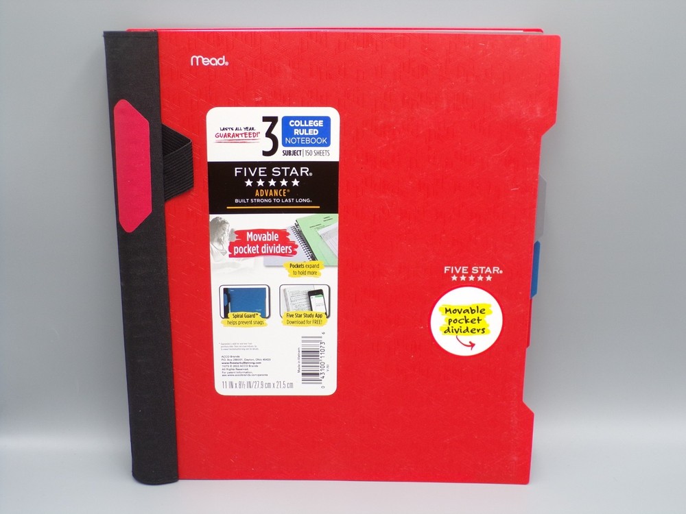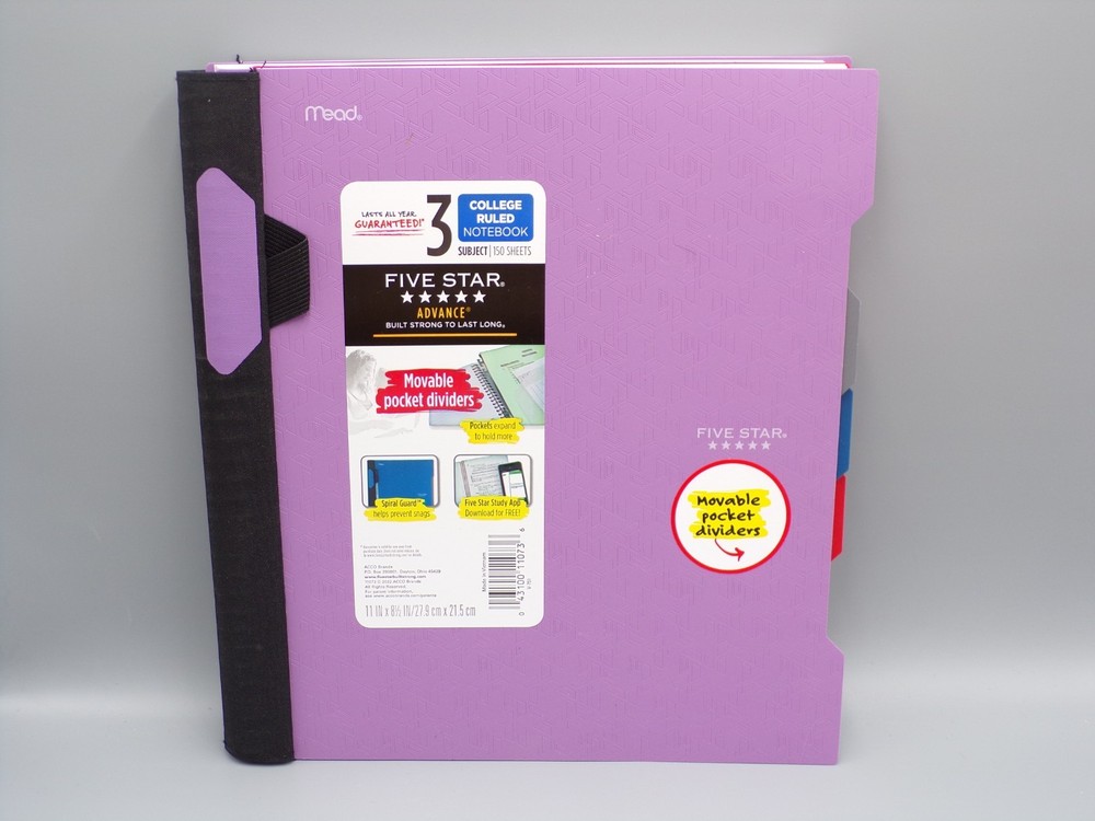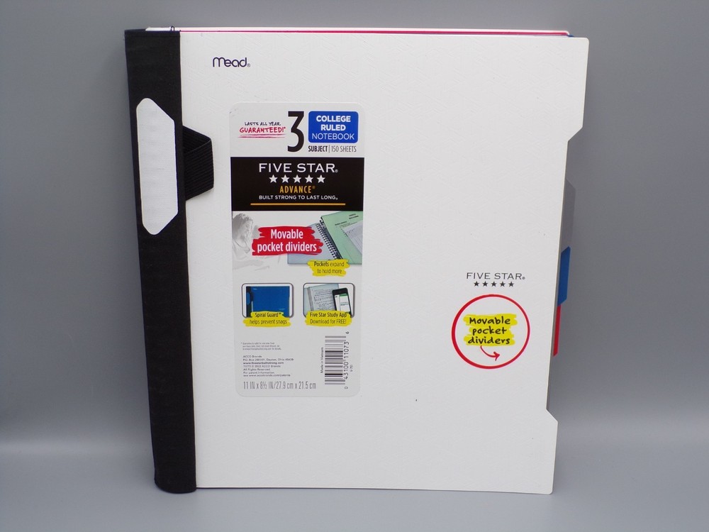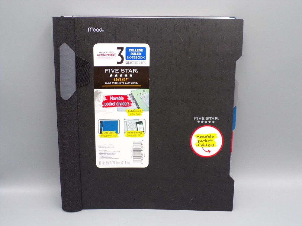 HomePack of 5 Mead Five Star Advance Notebook 3 Subject College Ruled 11 in x 8.5