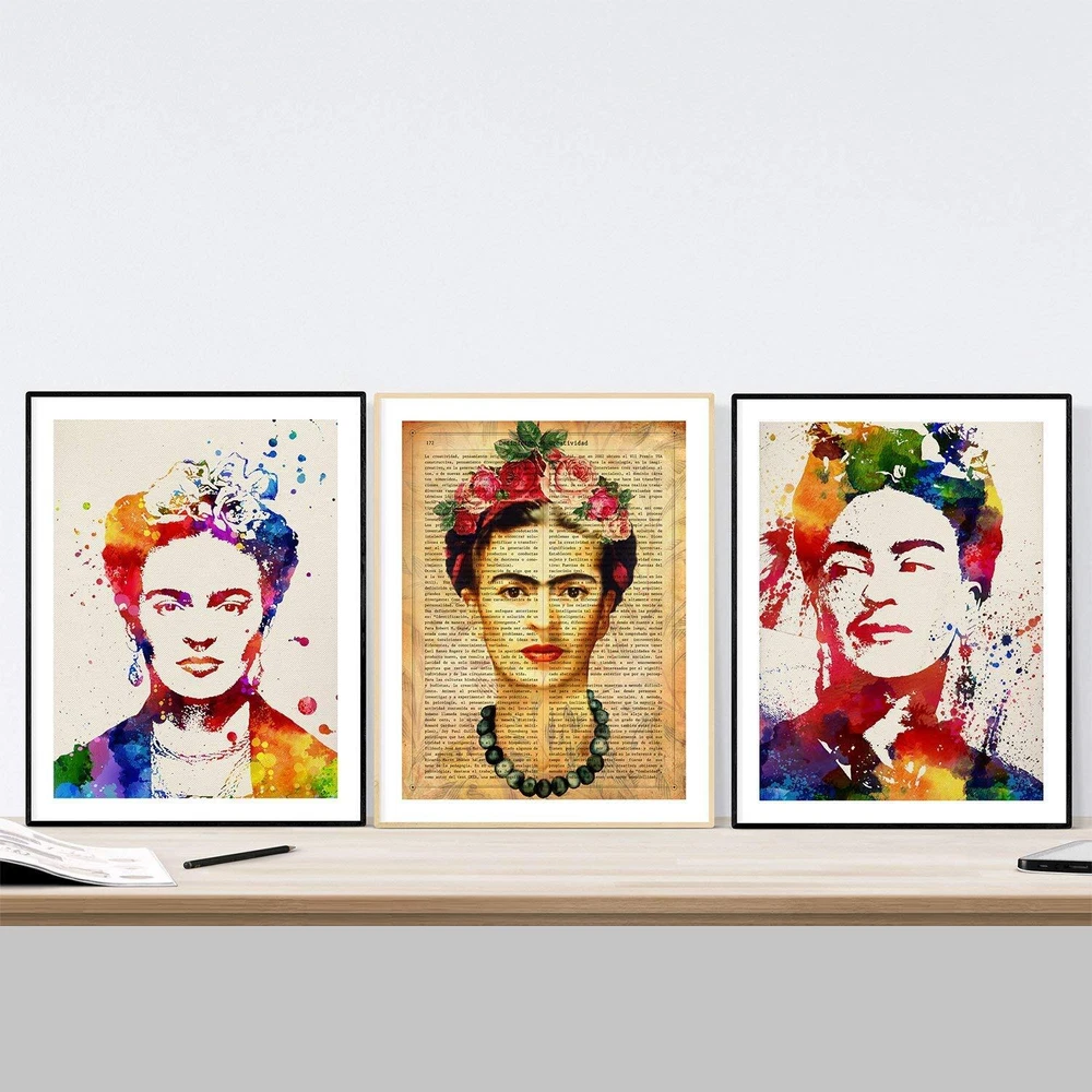 Pack 3 Posters Frida Creative. Frida painting. Frida kahlo art for wall (does not include a frame) . Tropical wall art, Mexican decorations for home , Mexican wall decor , Aztec art , Chicano art, Mexican Painter. poster collection.. All our posters are of the highest quality, printed in 250 gram paper, with resilient and colourful inks. Every product we sell is packed very carefully to prevent any damage to the poster. Check more articles in our amazon page or in www..com Good choice for living room, bed room, office, restaurant . Great gift for someone special Easy to frame, Perfect gift for someone you love Three posters size 11''x17'' Perfect for framing Printed on high quality paper 250 grams. Made in Spain