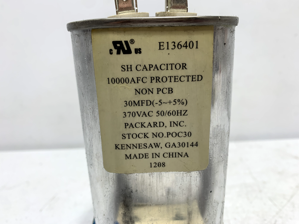 This is a NEW - unused Packard POC30 Motor Run Capacitor 30 MFD 370 VAC -40C to 70C Oval Buyers and Re-sellers, don't miss this opportunity to purchase quality surplus equipment at a great price! There are many more surplus parts on our store, check it out! Return Policy: Returns are accepted within 60 days of the delivery date. Rest assured we will cover all return shipping costs! All returns must be in "as shipped" original condition to qualify for a refund. Photos of packing and product is required for damaged items. Customer returns that satisfy all of the above requirements will be issued a refund including any applicable sales tax Brand new, Packard Run Capacitor, Oval, 30 Mfd., 370 Volt, POC30, 30-370. Packard offers the widest range of capacitors in the industry! Individually boxed Metal cases Metallized film Oil filled Non PCB oil Insulated terminals Hertz: 50/60 Replaces Part Numbers: Fits Models: