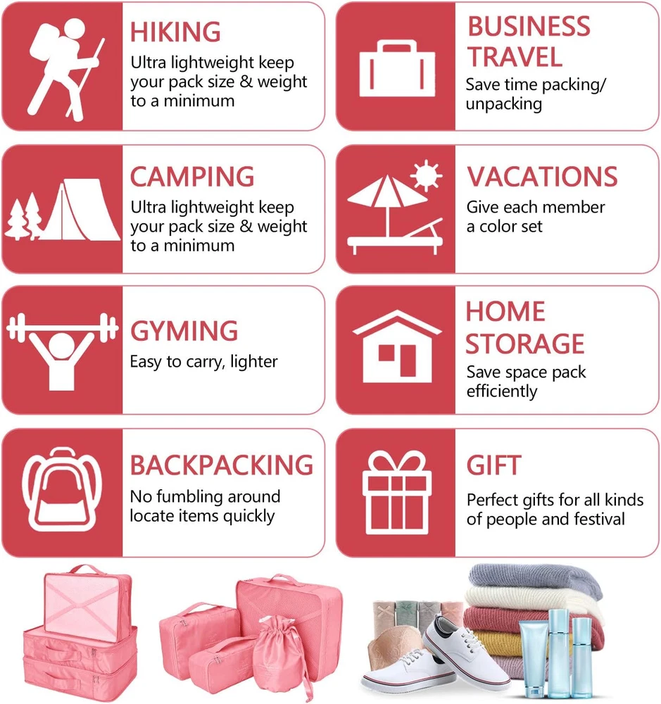 Packing Cubes 8 Sets Travel Luggage Organizers Include Waterproof Shoe Storage B