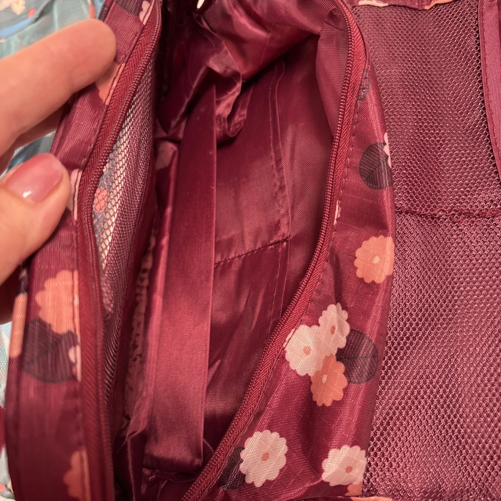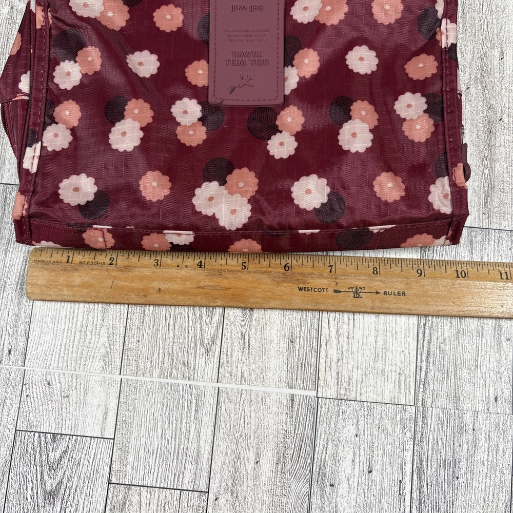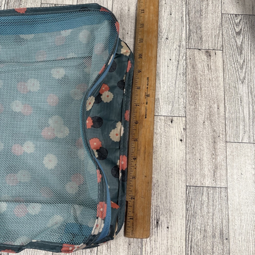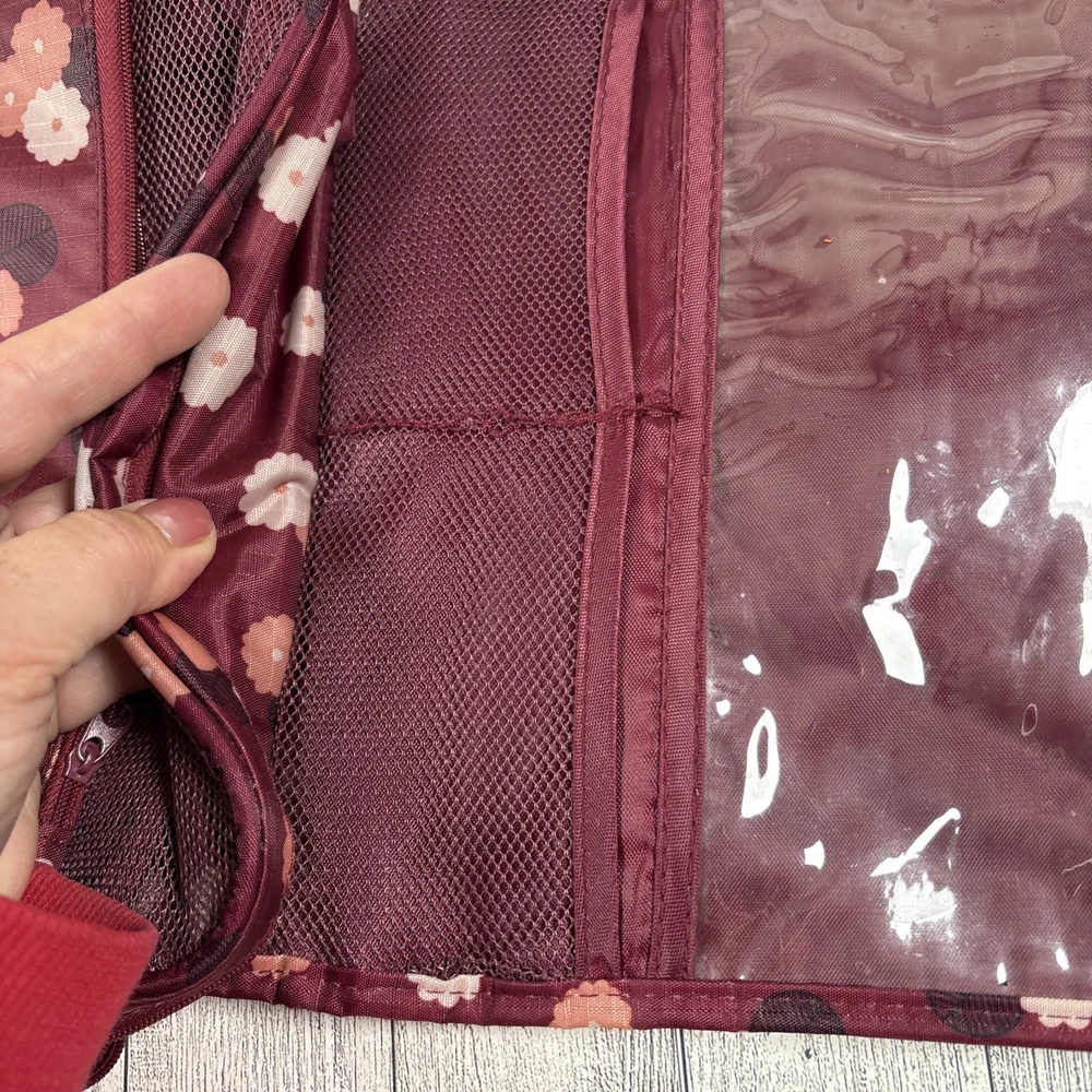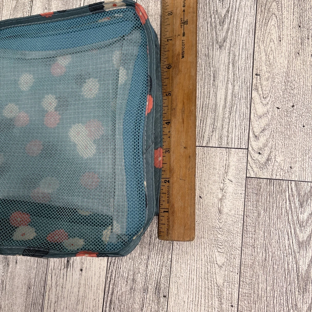 See photos for condition and measurements. This Packing Cubes Set of 2 in blue floral with a Toiletry Bag in maroon floral. The perfect travel organization solution for your next adventure. Made of lightweight nylon material with a mesh pattern, these rectangular-shaped storage bags come in assorted sizes . The colorful design is both functional and stylish, featuring a zipper closure for secure storage. The set includes a toiletry bag, making it easy to keep all your essentials in one place while on the go.