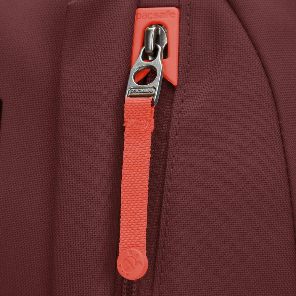 Description Spacious and practical, this durable anti-theft backpack is designed to fit all the essentials you need, including a padded compartment for your laptop, a luggage slip, and side pocket for a reusable water bottle. There’s even a hidden storage pocket for extra protection to keep your phone and wallet. This backpack features cut-resistant materials and straps, securable zippers, and an RFID blocking pocket. Our GO collection unlocks adventure and possibility with anti-theft security and effortless function. Made from 31 recycled plastic bottles ANTI-THEFT - With the wire reinforced anchor strap, backpack can be secured to table or chair to keep belongings secure when unattended. Zip pullers attachable to hooks to deter pickpockets. Cut Proof Material (lightweight steel mesh) to prevent theft. ORGANIZATION - 2x Lockable Zippered Compartments. Front pocket with Key Clip for quick access. Main compartment with 15" Padded Laptop Sleeve, 1x RFID Blocking Pocket, Pen Loop, 2x Side Water Bottle Pocket, Zippered Hidden Back Storage Pocket, Luggage Slip TRAVEL READY - Features Luggage Slip that slides over luggage handles to keep bag balanced on a wheeled bag when in transit. RFID blocking pocket material meets official US FIPS 201 quality standard to protect credits cards/IDs against unauthorized scans. MADE FROM RECYCLED POLYESTER - Backpack is made of eco-friendly Polyester made from recycled waste, such as plastic bottles. Material has the same quality as new Polyester with a smaller environmental footprint. DIMENSIONS, WEIGHT & WARRANTY - 18.1"H x 12.2"W x 5.5"D, 1.6 lbs. Made of soft, durable, water resistant and easy to clean recycled Polyester to ensure long-lasting usage everyday & during weekends. Comes with a 5-year Pacsafe warranty.