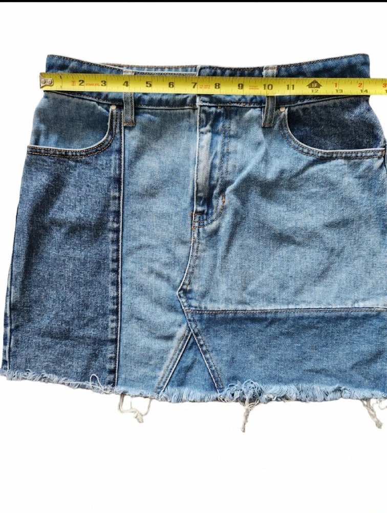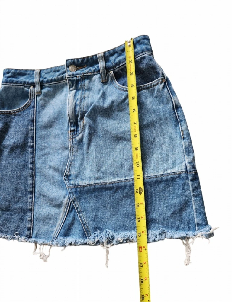 PACSUN Reconstructed Patchwork Denim Frayed Skirt Reconstructed denim - super trendy!! Cut off frayed hem Distressed look 4 pocket design and a cut off hem. Super cute for summer/spring and would look great with tights in for fall outfits!! Excellent preowned condition, like new. No Rips, Stains, or Tears. See pictures for details , Measurements and condition. ๐ฌ Smoke Free Home ๐ฆ Iโm open to fair offers ๐ง Happy to answer questions ๐๐ป Thank you for checking out my closet Denim, Streetwear, Casual, Y2K, 2000s