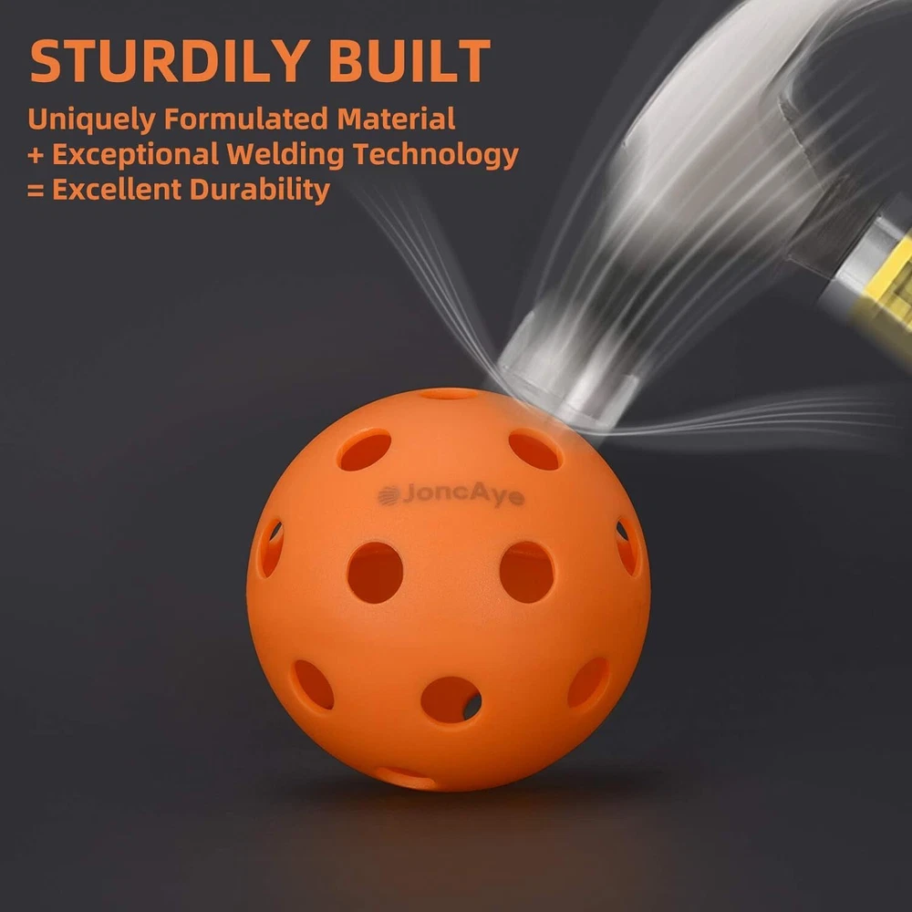 πΎπππππππ πππΎππππ½πΌππ πππ: This pickleball set of unbeatable value includes 4 fiberglass pickleball paddles, 2 outdoor pickleball balls + 2 indoor pickleball balls, 4 pickleball lead tapes and 1 pickleball bag to accommodate this racket set of 4 with all your essential pickleball accessories. Fetch a pickleball net, and find a pickleball court, you can enjoy the amazing game with your family and friends right away! πππΌππΌ πΌπππππππΏ: JoncAye BLITZ pickle-ball paddle series is tested and approved by USAPA for tournament play. Each paddle is manufactured strictly according to USAPA standards, and carries a USAPA approval label. Further details can be found on the USA Pickleball website πππππππππππ ππΌπΏπΏππ ππππ ππΌπππ πππππ ππππ: JoncAye BLITZ pickleball paddles 4 pack are made of top-grade fiberglass with excellent strength and stiffness. Each paddle weighs an optimal 8 oz, a great balance of power and control. These light pickleball racquets suit players of all levels. They allow you to swing the paddle for long time with less stress on the shoulder and on the waist. The large spot design is especially friendly to beginners and intermediates πΎππππππ ππΌππΏ ππππ ππππ πππππΌ ππππ ππΌπππ: JoncAye pickleball paddles features a perforated, stitched cushioned grip that is anti-slip and sweat-wicking. It provides you great comfort while enabling precise grip and maneuverability. The 4.25'' grip hold suits most hands comfortably. 4 colorful pickleball grip tapes are additionally included for replacement over the time πππππππ πππΎππππ½πΌππ ππΌπΏπΏππ: The composite PP honeycomb core inside this pickleball paddle set of 4 helps the pickleball equipment make less noise than a Nomex core. Now you can enjoy this popular outdoor family game more to your heartβs content with no more worries about disturbing your neighbors On Jan 3, 2025 at 18:32:09 PST, seller added the following information:
