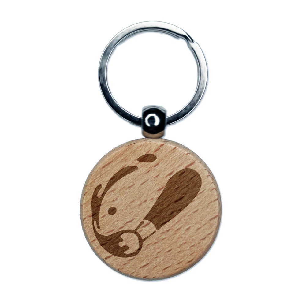 Paint Brush Splatter Engraved Wood Round Keychain Tag Charm