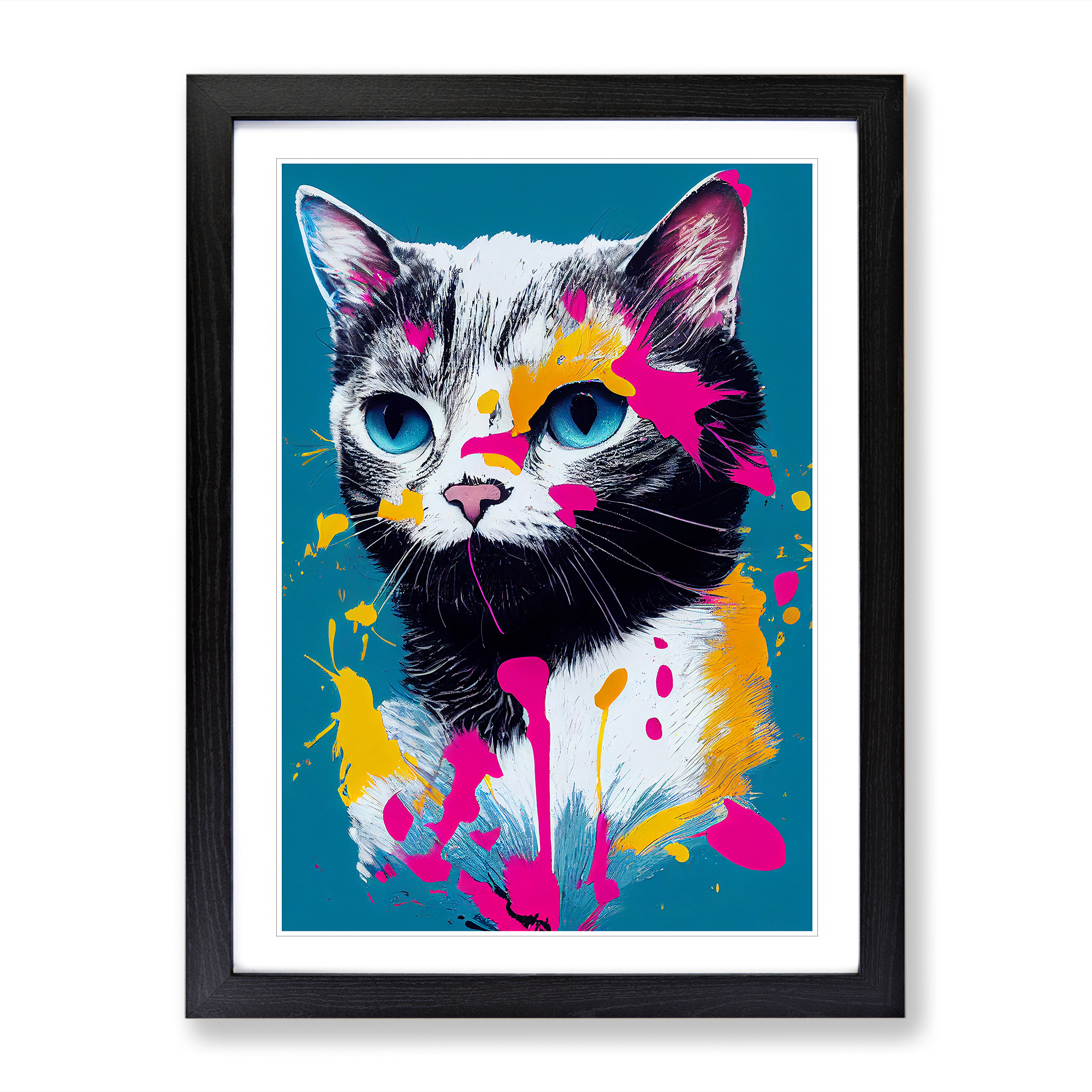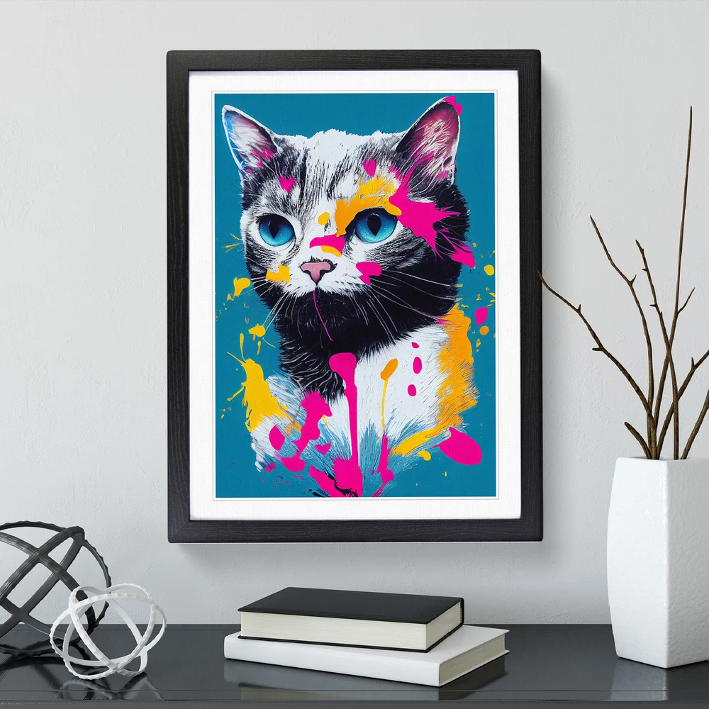Transform your living space with our captivating framed wall art prints. Crafted in the UK, the stunning Paint Splat Cat No.3 framed print is designed to elevate your home decor. We utilise high-quality inks to ensure the colours of the artwork are rich, vibrant, and true to life. The print seamlessly fits within a contemporary frame, creating a stylish wall art picture that is ready to hang in your living room, lounge, bedroom, dining room and home office. Visit Our Shop eBay Message Framed Art Print Enhance your living space and showcase your individual style with our framed prints. Each design is printed upon premium art paper with fade-resistant inks, ensuring the colours remain rich and vibrant for years to come. The print is encased in a ready-to-hang frame, offered in black, oak, or walnut, and safeguarded by shatter-resistant Perspex. An ideal addition to your home, and the perfect gift choice. Like what you see? Visit our eBay store to see more. Premium Quality : The design is printed on quality art paper, enhanced with fade-resistant colours. Ready to Hang : The frame is pre-fitted with hanging hardware, making wall mounting simple, safe and secure. Frame Dimensions : A4 - 25 x 34 cm / A3 - 34 x 46 cm / A2 - 46 x 64 cm. Fast Shipping : Prompt, reliable UK-based dispatch. Customer Satisfaction : Our priority is your satisfaction which is why we offer a hassle-free return policy. Payment You can pay for your order safely and securely via credit or debit card, Apple Pay, Google Pay, and PayPal. Shipping Production times are 1 to 2 working days. Orders are sent via Royal Mail or Evri (depending on size). Returns For your peace of mind, we have a 30-day returns policy in place. Please, contact us for more details. At Big Box Art, we are dedicated to providing high-quality wall art and decorative homeware items. From the outset, we've focused on excellence in our products, service, and reputation, continually enhancing our standards. With an extensive selection of designs, you're certain to discover the perfect piece to suit your taste. ? Copyright 2021, Big Box Art. All rights reserved. Made with by eBayshopdesign.org