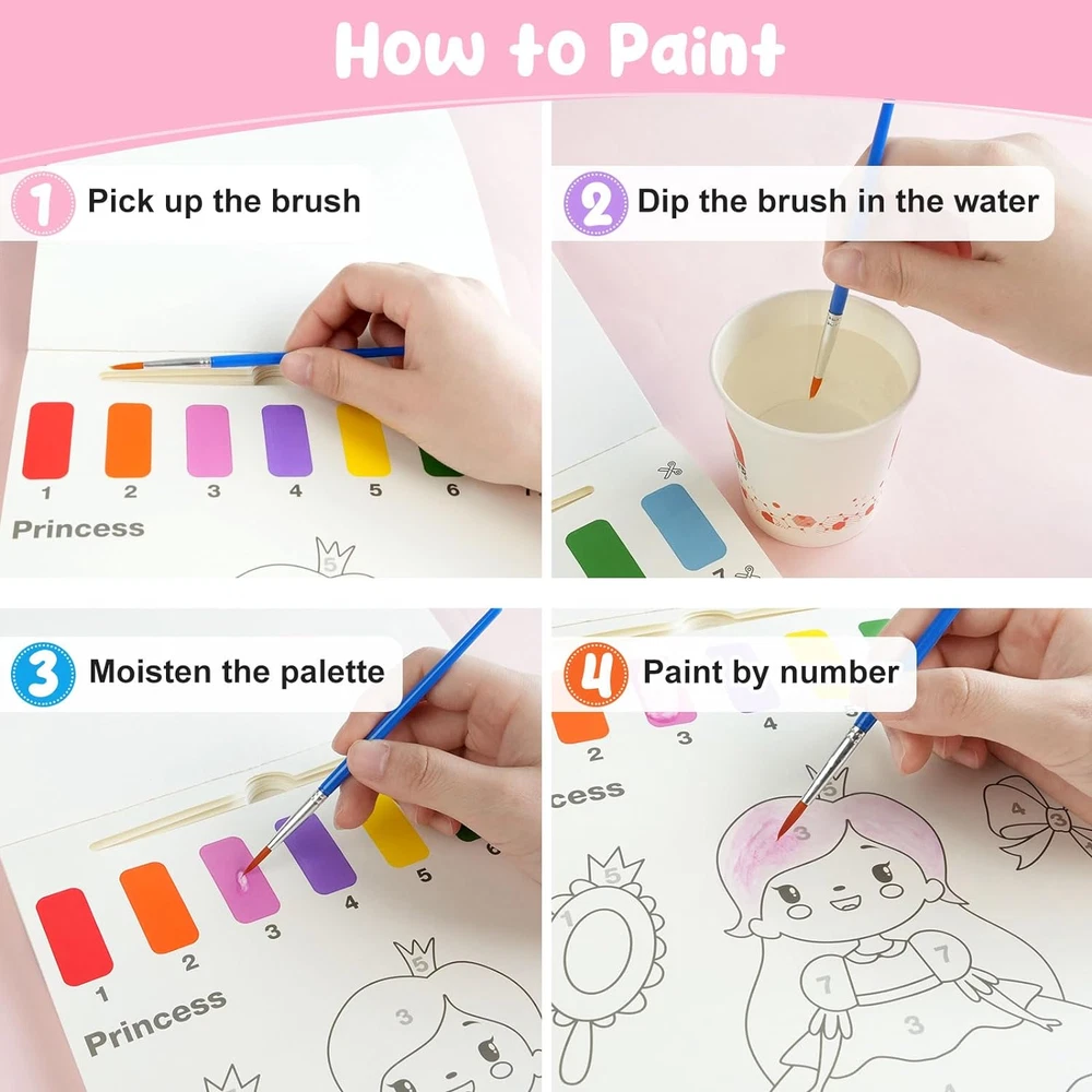 Store New Arrivals Add to Favorite View Feedback Contact Paint with Water Coloring Books: Princess Mess Free Watercolor Painting Kit - Arts and Crafts for Kids Ages 4 5 6 7 8 Years Old - Travel Activities Birthday Christmas Toy Gift Description Item model number Princess and Unicon Unit Count 1 Count Indoor/Outdoor Usage Indoor Item Volume 577.5 Cubic Centimeters Color Pink-princess Special Feature non-toxic Product Dimensions 10 x 8 x 2 inches Age Range (Description) Kid Specific Uses For Product arts and crafts activities, travel activities, screen-free entertainment Item Weight 9.6 ounces Size 1 Count (Pack of 1) Model Name Princess and Unicon Coloring Books Surface Recommendation Paper Package Information Can Included Components Brush Finish Type colorful Paint Type Watercolor π¨ Water Coloring Books for Toddlers: Water coloring painting is a fun toddler activity. Kids just need to dip the brush into the water, mix the water with the paint and start painting! Suitable for ages 4-8 boys and girls painting kits. π¨ Mess Free Paint with Water Kit: The watercolor painting book has 20 different coloring papers of different patterns of magical and unicon, and the paint palettes are printed on each coloring page, reduce the mess of paint, and cleanup will be a breeze, you can rest assured! π¨ Get Away from Electronics: Cute unicon and princess patterns can quickly attract girl's attention, kids can spend hours coloring different patterns. Comes with 2 brushes and each page has cutting lines, so multiple kids can draw together, keep them away from the hazards of screens and electronics! π¨ Inspire Children's Artistic Talent: Children can color according to the number without pressure, or they can paint freely as they like, stimulates children's imagination, improves their creative painting ability, which is a good way to develop children's color recognition ability, hand-eye coordination, and artistic talent. π Perfect Art and Craft Gifts for Ages 4-8: Children's watercolor painting books are perfect gifts for 4 5 6 7 8 years old as birthday gifts, class gifts, Easter gifts, Thanksgiving gifts, Christmas gifts. Kids will find fun in our water paint books! Product Description ABOUT US We offer the best prices around on high quality products. Our E-store includes media such as books, movies, music and games while offering electronics, toys, sporting apparel, clothing, tools, general home, garden items and more. SHIPPING We are always working hard to ensure your package arrives as soon as possible. Please understand that some factors like weather, high postal traffic, and the performance of shipping companies are outside of our control. We offer free shipping to the lower 48 states and ship within 2 business days of payment, usually sooner. We do not accept P.O. Boxes. Please provide a physical address. RETURNS We offer a 30-Day Return Policy on items which you are not completely satisfied with. You have the option for a full-refund or an exchange of the item. No returns are available on items shipped outside of the USA. PAYMENT We accept PayPal. CONTACT US This page content is yet to come Please ad us to your favorite seller and visit again later Thank You CUSTOMER SATISFACTION We try our very best to make sure every customer is completely satisfied. If there's a problem, message us! We're happy to help.