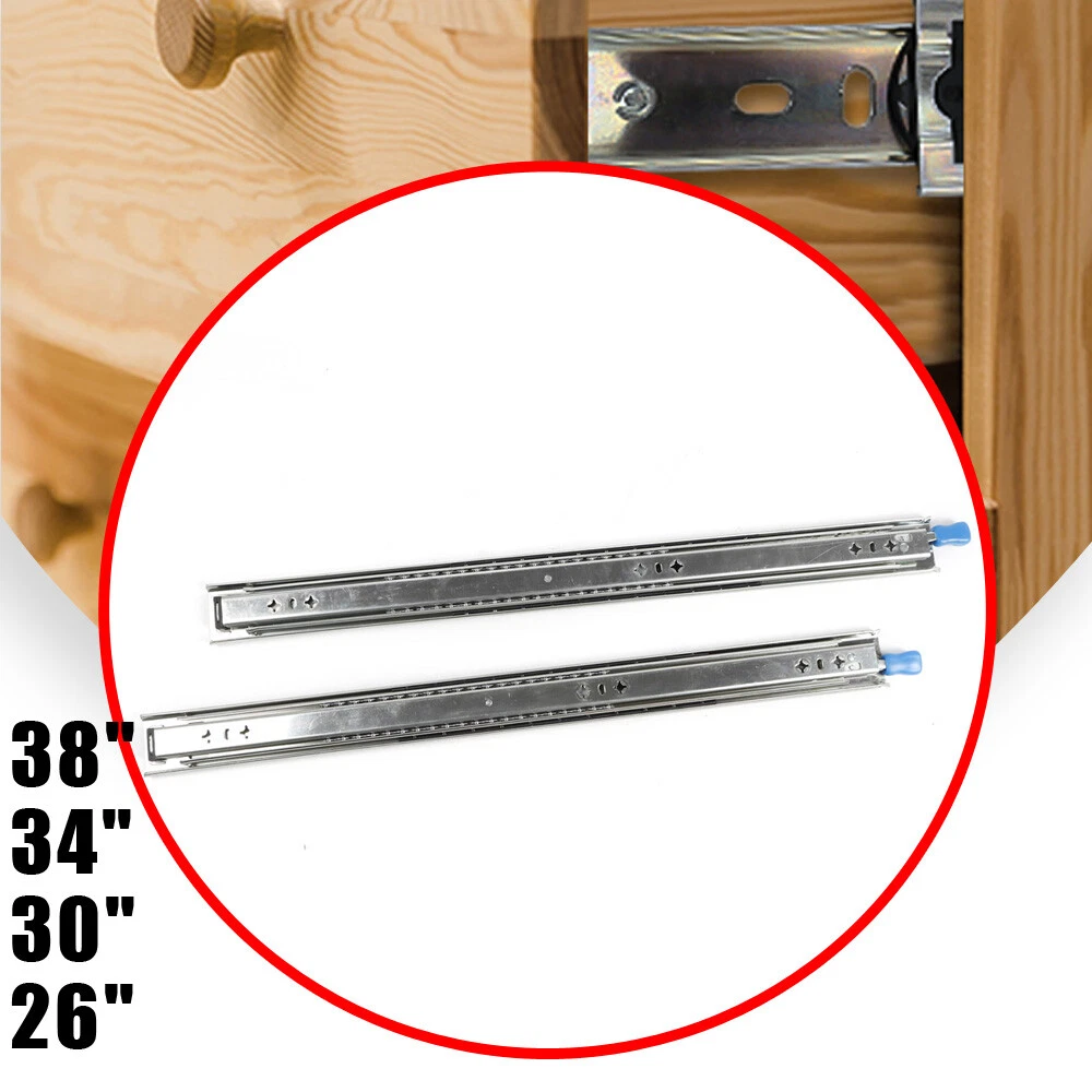 This Is a New Heavy-duty Lock Slide Rail with Good Stability, Small Swing, Smooth Sliding, Easy to Use, Suitable for All Kinds of Cupboard, Tool Cabinets and Other Large Equipment, Is the Furniture Industry, Caravan and Industrial Field of High-quality Choice. Specification: Colour: Silver Type: Heavy Slides Material: High Quality Cold Rolled Sheet Bearing Capacity: 120kg Surface Treatment: Blue Zinc, Electrophoretic Black Installation Form: Drawer Side Installation Specifications: 20"-40”. Origin Length: 19.6-39.3”. Extended Length: 39.3”-78.7”. Features: 1. the Surface Is Coated with High Density Zinc Metal, Which Can Effectively Prevent the Corrosion of the Product Surface and Prolong the Service Life of the Product. Pair 18-40 inch Heavy Duty Drawer Slides with Lock - Full Extension Ball Bearing This Is a New Heavy-duty Lock Slide Rail with Good Stability, Small Swing, Smooth Sliding, Easy to Use, Suitable for All Kinds of Cupboard, Tool Cabinets and Other Large Equipment, Is the Furniture Industry, Caravan and Industrial Field of High-quality Choice. Specification: Colour: Silver Type: Heavy Slides Material: High Quality Cold Rolled Sheet Bearing Capacity: 120kg Surface Treatment: Blue Zinc, Electrophoretic Black Installation Form: Drawer Side Installation Specifications: 20"-40”. Origin Length: 19.6-39.3”. Extended Length: 39.3”-78.7”. Features: 1. the Surface Is Coated with High Density Zinc Metal, Which Can Effectively Prevent the Corrosion of the Product Surface and Prolong the Service Life of the Product. 2. Anti-skid Rubber Pad, Increase Friction, Put Back Track Colloidal Fall and Open Automatically After Closing. 3. Anti-skid Device with Lock, Suitable for Heavy Industrial Equipment. 4. Solid Steel Ball, Check Can Bear 120 Kg (the Longer the Pull out, the Smaller the Load). 5. Three-section Track Design, Effective Load-bearing, Precise Contraction. Package Included: 1 Pair Heavy Slide (Excluding Mounting Brackets and Screws) Note: -Due to Different Producing Batches, Product Details Might Be a Little Different. If You Minding the Difference, Please Buy It Carefully. -Please Allow 1-3mm Differs Due to Manual Measurement. -Due to the Different Display and Different Light, the Picture May Not Reflect the Actual Color of the Item. Thanks for Your Understanding. Payment Delivery details Terms of sales About us Contact us Payment We accept ebay payment 。 Fees such as import duties, taxes are not included in the item price or shipping costs. These charges are the buyer's responsibility. Delivery details Shipping: 2-9 working days to: USA Terms of sales We maintain high standards of excellence and strive for hundred percent customer satisfaction. Feedback is very important to us. We hope that you contact us immediately before you give neutral or negative feedback, so that we can address your concerns. It is impossible to address issues if we do not know about them! About us Your satis faction is our ultimate goal. We work hard to earn your trust and future business. Our certified technicians have tested each item before shipping. The unit comes with 1 year limited warranty on all manufacturing defects. a) If you receive a defective item, you may return it or ask for a discount. Please contact us within 14 days after you receive the package. b) What you returned must be intact and in its original packaging as re? u. Customer is responsible for shipping costs of the returned item. c) We will cover the cost of shipping back t with the shipping rate indicated in the registration page. We will send you a new unit or refund the full payment you paid. Thank you. Contact us Business Hour Business Hour: Monday To Friday: 8:30 AM to 5:00 PM (Beijing China time) Due to time zones, our reply to your questions may not be immediately. But within above working time, we will reply your email within 24 hours. If it's non-workdays, please kindly be patient and wait till Monday. Please contact us with ebay message. Please feel free to contact us if you have any questions. Monday To Friday: 8:30 AM to 5:00 PM (Beijing China time) Due to time zones, our reply to your questions may not be immediately. But within above working time, we will reply your email within 24 hours. If it's non-workdays, please kindly be patient and wait till Monday. Please contact us with ebay message. Please feel free to contact us if you have any questions. Feature * stable performance,reliable quality 国内运输 Standard Shipping Item Location CA/NJ/Austell Type Heavy slides Brand Unbranded MPN Does Not Apply Material high quality cold rolled sheet Color Silver Bearing capacity 120KG Surface treatment blue zinc, electrophoretic black Installation Form Drawer Side Installation Specifications 20"(500mm),24”(600mm),36(900mm)”,40”(1000mm) Note excluding mounting brackets and screws Closing Type N/A Item Width N/A Item Height N/A Item Length N/A