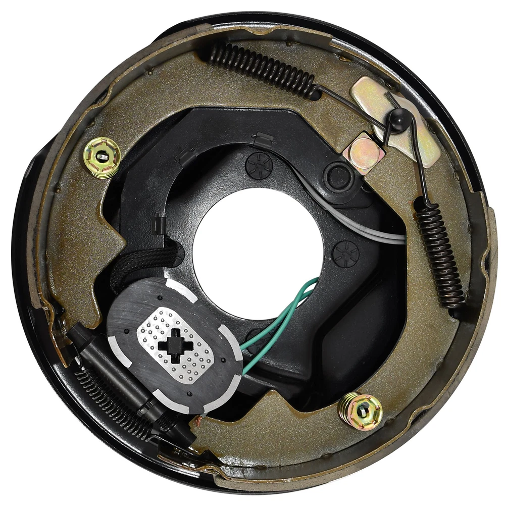 Pair 2 New 10" x 2-1/4" Electric Trailer Brake Assembly for 3,500 lbs axle Product Description 1 LH + 1 RH 10"x2-1/4" electric trailer brake assemblies Center hole dia: 3" Mounting bolt circle dia: 4" Works on Dexter and other brands 3500 lbs axle in the market