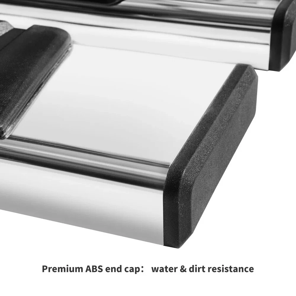 Universal Fitment: No Item Length: approx.80" Features: Fixed, Covered with Slip-Resistant ABS OE/OEM Part Number: Does not apply Material: ABS, Stainless Steel Color: Silver Shape: Rectangular Items Included: Bolts, Mounting Hardware Number of Pieces: 2 Finish: Powder-Coated Type: Running Board Brand: Unbranded