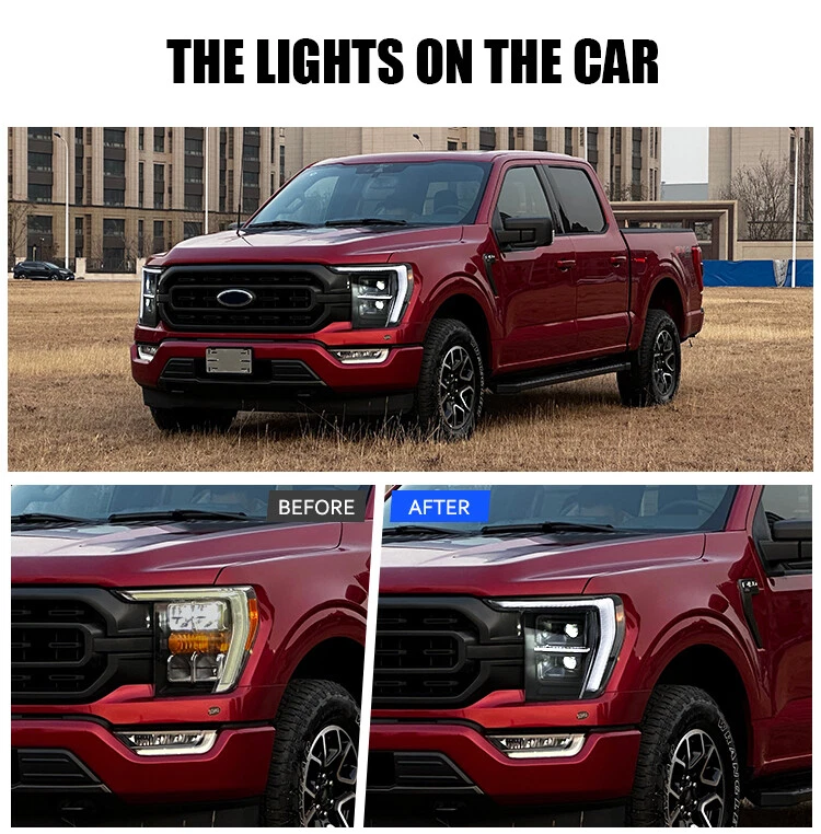 Pair Front Lamps For 2021 2022 2023 Ford F150 LED Projector Headlights Head Lamp Features: 1. One pair: Left + Right head lights 2. Bulbs: All bulbs are built-in LED, no extra bulbs needed 3. Function: DRL(White)+Turn Signal(Yellow)+High Beam(White)+Low Beam(White) lights 4. Easy installation: plug and play,same as original one to install 5.Assembly: all parts are included in the package,no need to buy extra bulbs or harness Fitment Fits For 2021 2022 2023 Ford F150 ( Professional Installation is Highly Recommended ) Package include 1 Pair of Headlights (driver's side + passenger's side) Note 1. Please confirm whether this car-lamps can fit your car before buying, if you are not sure, please contact us and send us pictures of your original car light or plug. 2. Using your factory supplied connector/harness will avoid cutting or modifying any wires. Specification ·100% Brand New ·Professional Installation is Highly Recommended ·Welcome to send us message for more information Warranty: One-Year warranty after receiving After Sales Service Please contact us before returning the products, we will do our best to help you solve all the problem well with good service!!! Questions Any question will be replied within 24 hours except the weekend and holiday. We will serve for you all sincerity!