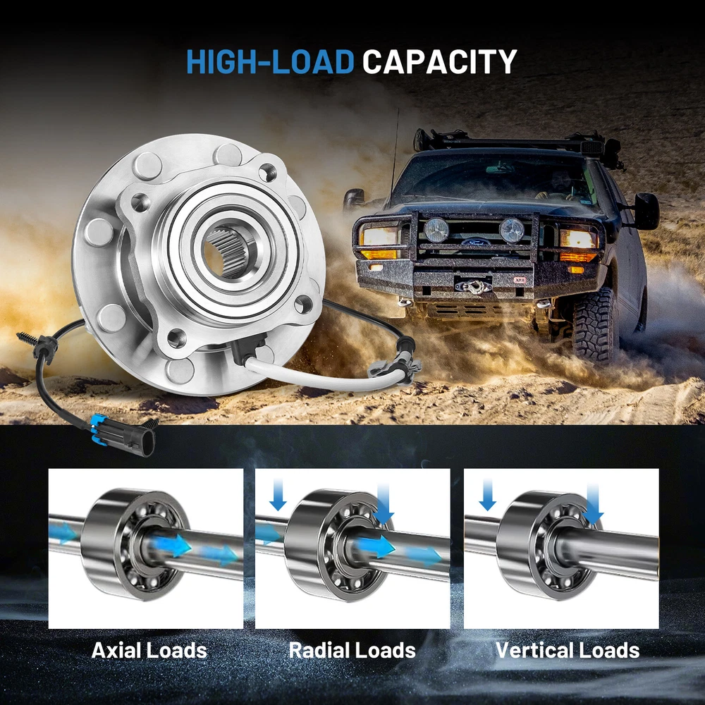 Specifications Position: Front Drive: 4WD Lugs: 8 Bolts ABS on Hub: Yes Replaces Part Numbers:515058,15042868,15104582,15112411,15225770,15719015,89059059,SP580310 Package Includes: 2 x Front Wheel Bearing and Hubs Assembly - 515058 Specifications Position: Front Drive: 4WD Lugs: 8 Bolts ABS on Hub: Yes Replaces Part Numbers:515058,15042868,15104582,15112411,15225770,15719015,89059059,SP580310 Fitment: 2002-2006 Chevrolet Avalanche 2500 2001-2006 Chevrolet Silverado 1500 2007 Chevrolet Silverado 1500 Classic 2001-2006 Chevrolet Silverado 1500 HD 2007 Chevrolet Silverado 1500 HD Classic 1999-2004 Chevrolet Silverado 2500 2001-2006 Chevrolet Silverado 2500 HD 2007 Chevrolet Silverado 2500 HD Classic 2004-2006 Chevrolet Silverado 3500 2007 Chevrolet Silverado 3500 Classic 2000-2006 Chevrolet Suburban 2500 2001-2006 GMC Sierra 1500 2007 GMC Sierra 1500 Classic 2001-2006 GMC Sierra 1500 HD 2007 GMC Sierra 1500 HD Classic 1999-2004 GMC Sierra 2500 2001-2006 GMC Sierra 2500 HD 2007 GMC Sierra 2500 HD Classic 2004-2006 GMC Sierra 3500 2007 GMC Sierra 3500 Classic 2000-2006 GMC Yukon XL 2500 2003-2007 Hummer H2 Package Includes: 2 x Front Wheel Bearing and Hubs Assembly - 515058