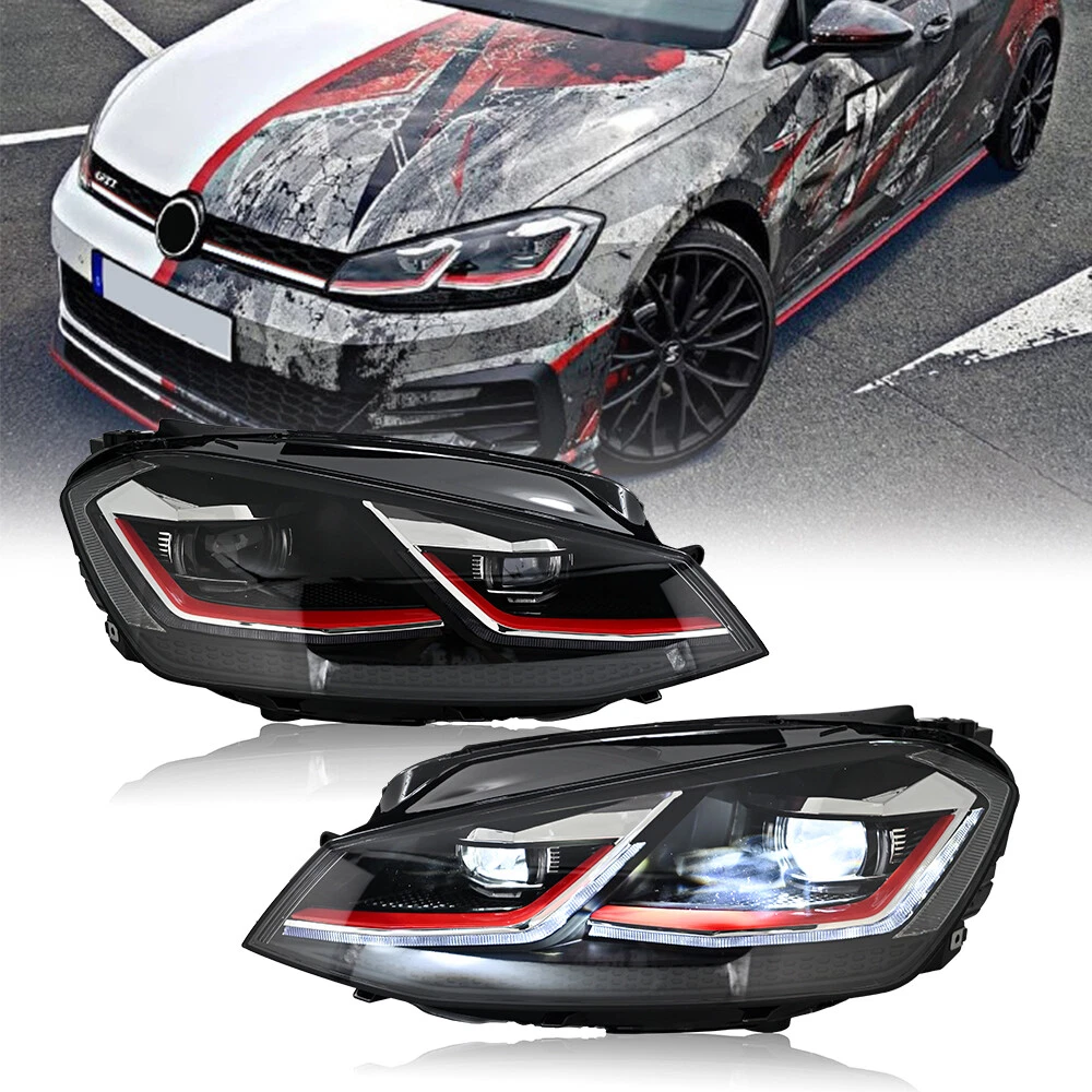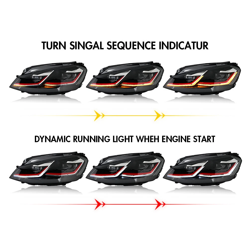 Pair Full LED Headlights For VW MK7 Golf 2013-2018 Head Front Lamps Sequential