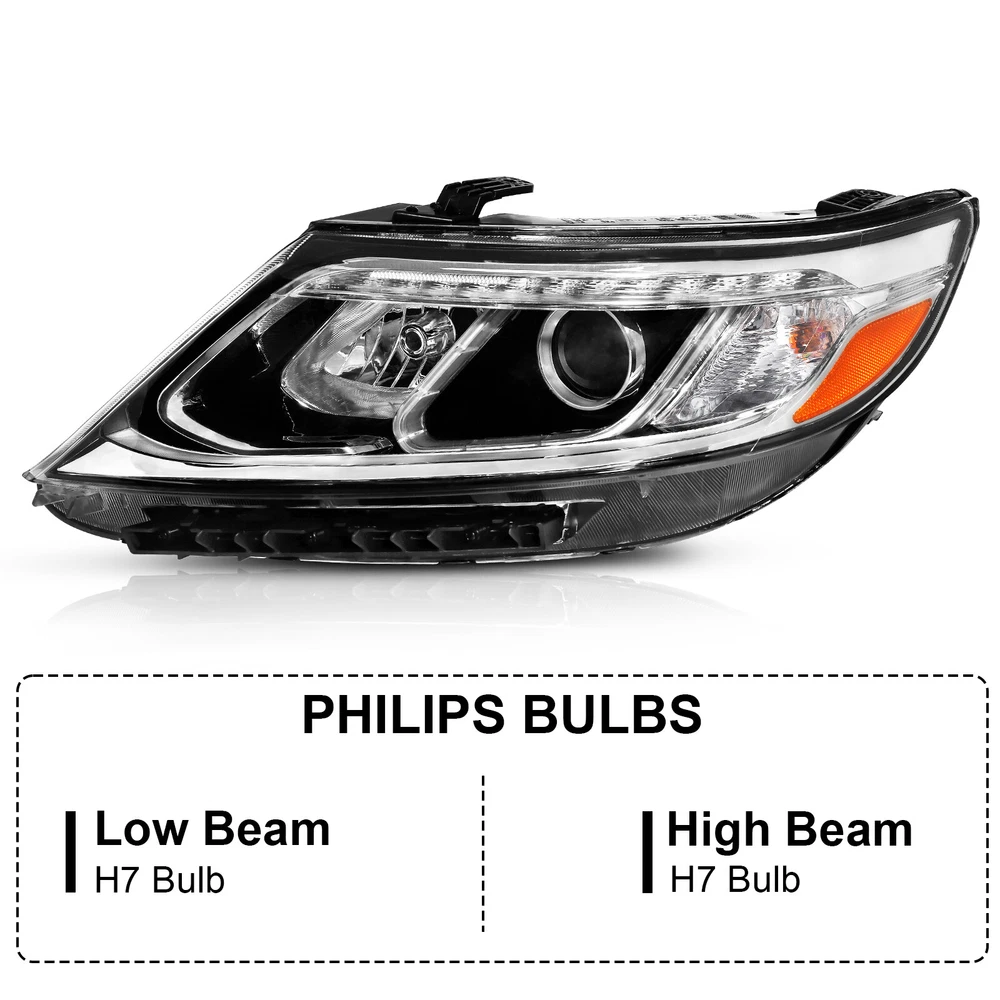 Pair Halogen Headlight Assembly w/Bulbs For 2014 2015 Kia Sorento LX Left Right Features: 1.Direct replacement for stock assemblies 2.Comes in pairs with driver & passenger sides (left & right) 3.DOT and SAE compliant with quality meeting or exceeding OEM units 4.Comes with bulbs to save your money and time 5.All Headlight Lenses come with anti-yellowing/ageing coating 6.1-Year limited warranty Specification: High Beam Bulb: H7 (Bulbs are included) Low Beam Bulb: H7 (Bulbs are included) Chrome Housing Clear Lens Clear Reflector Compatible with: 2014 2015 Kia Sorento LX Package includes: 1 Pair of headlights