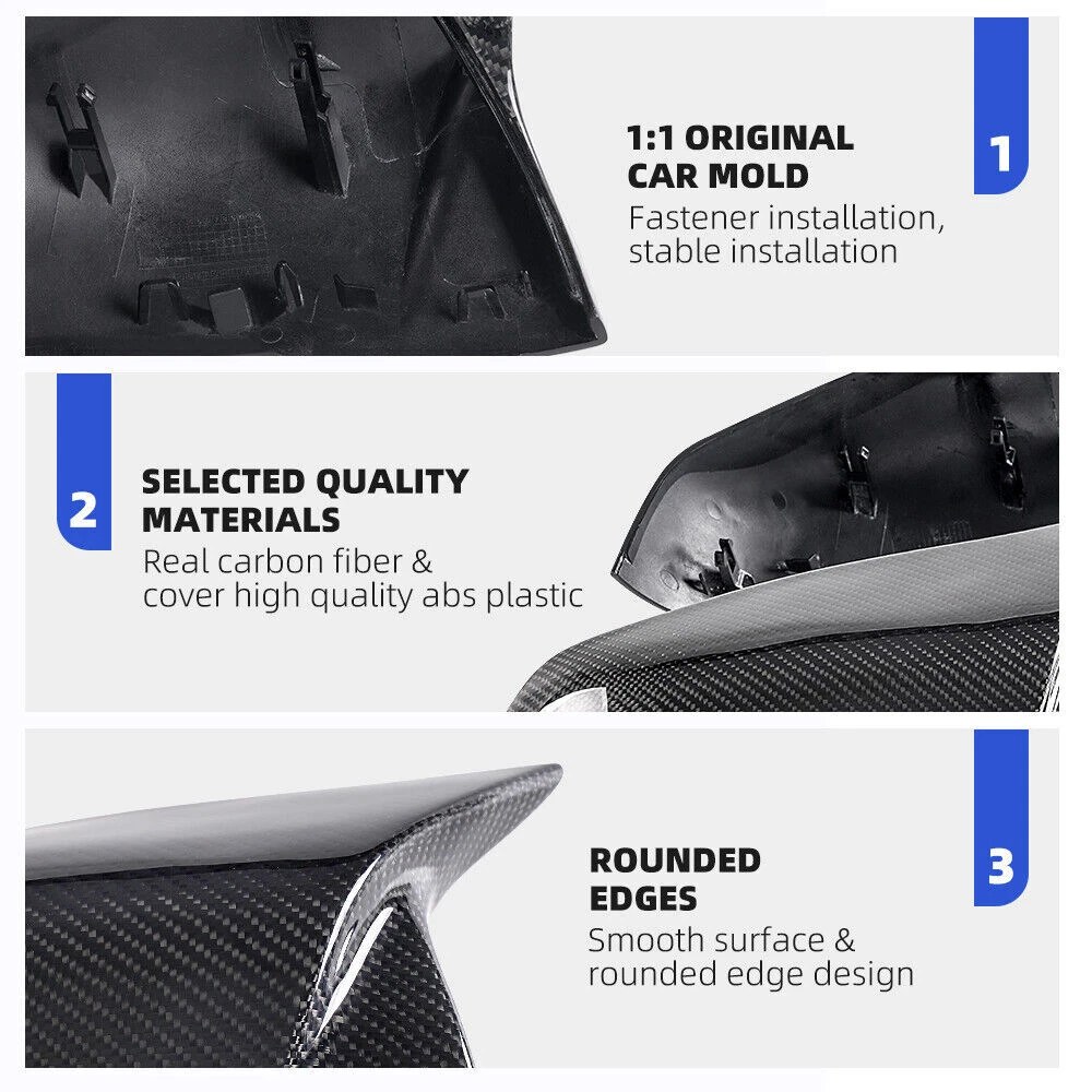 New 2X Real Carbon Fiber Side Mirror Covers Caps For BMW F20 F21 F22 F30 F32 F36 FITMENT: Fit For BMW 1 Series F20 F21 116i 118i 120i 125i 130i Hatchback 2012-2016 Fit For BMW 2 Series F22 F23 218i 220i 228i Coupe & Convertible 2014-on Fit For BMW 3 Series F30 F31 320i 328i 330i 335i Sedan & Touring 2012-on Fit For BMW 4 Series F32 F33 F36 420i 428i 435i Coupe & Convertible & Gran Coupe2014-on Fit For BMW X Series X1 E84 2013-2015Fit For BMW M Series F87 M2 2014-on SPECIFICATIONS: Type: Direct Add-On M-Style Rear View Mirror Cap Cover Material: Real Carbon Fiber Covered ABS Plastic FEATURES: 100% Brand New and Never Used or Installed. Made of Light Weight & Top-Grade Durable Carbon Fiber Material With High QualityABS Base/Back. Top Carbon Layer is 100% Real 3K Vacuumed & Glossy Hand-Laid Carbon Fiber. These are Actual Carbon Fiber, Not Carbon Fiber Paint or Print or Hydrodip, These arethe Real Deal.Gives Your Car's Exterior the Luxury Carbon Accent Tone at Reasonable PriceComes in Pair. Including Both Left and Right Side Direct Replacement For Original Mirror Cap Cover, Not the Add-On Covers. These are Replacement Covers. You Will Need to Removal the Factory Cover and PutThese On. Professional Installation is Recommended. PACKAGE INCLUDE: 1 Pair of Real Carbon Fiber Replacement Side Mirror Cover Caps NOTE: 1. Please allow 0.5-1 inch difference due to manual measurement. (1 inch=2.54cm) 2. Please check the size measurement and the picture carefully before makingpayment. 3. Due to the difference between different monitors, the picture may not reflect theactual color of the item. Please understand, Thank you. SHIPPING INFORMATION PAYMENT WARRANTY ABOUT US CONTACT US SHIPPING INFORMATION We will only ship this item to buyers by Normal Mail, please confirm your address is correct, and if you want to change the delivery address, just feel free to contact us when you purchase. Usually, we will ship the orders out and upload the tracking number within 1-2 business days(Monday to Saturday from 8:30am-5:30pm) after you complete the payment. PAYMENT We will only accept eBay payment. Please pay using eBay payment ONLY within 7 days from the date of transaction be made. WARRANTY Please inspect your order upon receipt.No damage claims will be honored after 14 days of delivery. All item we sold come with 90 days defective warranty from the date. ABOUT US We are a powerful factory producing auto parts,and we have a professional sales and after-sales team that can provide you with excellent products and services. CONTACT US For any reason you want to contact us,We aim at satisfying every visitor, no matter what kind of situation you meet with, we will be right here to serve you. Please contact our team. If you are happy with the transaction with us, leaving us an ALL-5-STAR positive feedback would be greatly appreciated. Have a good shopping.