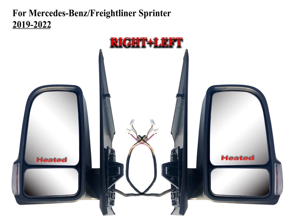 Pair Passenger Right Side and Driver Left Side Door Mirror for 2019- 2022 Mercedes/Freightliner Sprinter 1500 2500 3500 4500 Fits these vehicles: 2019-2022 Mercedes/Freightliner Sprinter 1500 Pair Passenger Right Side and Driver Left Side Door Mirror 2019-2022 Mercedes/Freightliner Sprinter 2500 Pair Passenger Right Side and Driver Left Side Door Mirror 2019-2022 Mercedes/Freightliner Sprinter 3500 Pair Passenger Right Side and Driver Left Side Door Mirror 2019-2022 Mercedes/Freightliner Sprinter 4500 Pair Passenger Right Side and Driver Left Side Door Mirror Application Information They are aftermarket parts with bulbs and cable Power Folding, Electric Adjustment,Heated Glass,BSM Light Computer tested for consistent Quality and unsurpassed reliability These are new aftermarket parts. They align with Original Equipment (OE) specifications and act as a direct replacement for the factory part. Full One Year Warranty This item is backed by our 10-year warranty. In the event this item should fail due to manufacturing defects during intended use, we will replace the part free of charge. This warranty covers the cost of the part only. Please note: Any modifications to an item of any kind before contacting us will void any and all warranty coverage for this item. Please contact us before modifying the part so that we have the opportunity to correct the situation. Attention California Customers: WARNING: This product can expose you to chemicals including Chromium (Hexavalent Compounds), which is known to the State of California to cause cancer, and birth defects or other reproductive harm. For more information, go to www.P65Warnings.ca.gov. To obtain proper fit and function confirm your vehicle has the exact mirror options listed above. SaiLin-Auto 99% of orders shipped within 24 hours Always Free Shipping with your Arlifo-Auto orders. Lowest price on brand new, in-the-box auto parts. Fantastic Aftermarket Auto parts seller and manufacturer. Click Here to visit our eBay Store General Policies: If you have a question about a part you should contact us before buying. SaiLin Autoparts is proud to offer you the best price and fastest service for all your aftermarket parts needs. In order to keep our prices low, we have the following purchasing policies. Returns: We're here for you! We are proud to offer quality service and we want your transaction to go perfectly. Questions: We only warranty cost of parts. Any installation or other fees are non-refundable. If the buyer needs to cancel or return the item, the buyer must begin the transaction in My eBay.