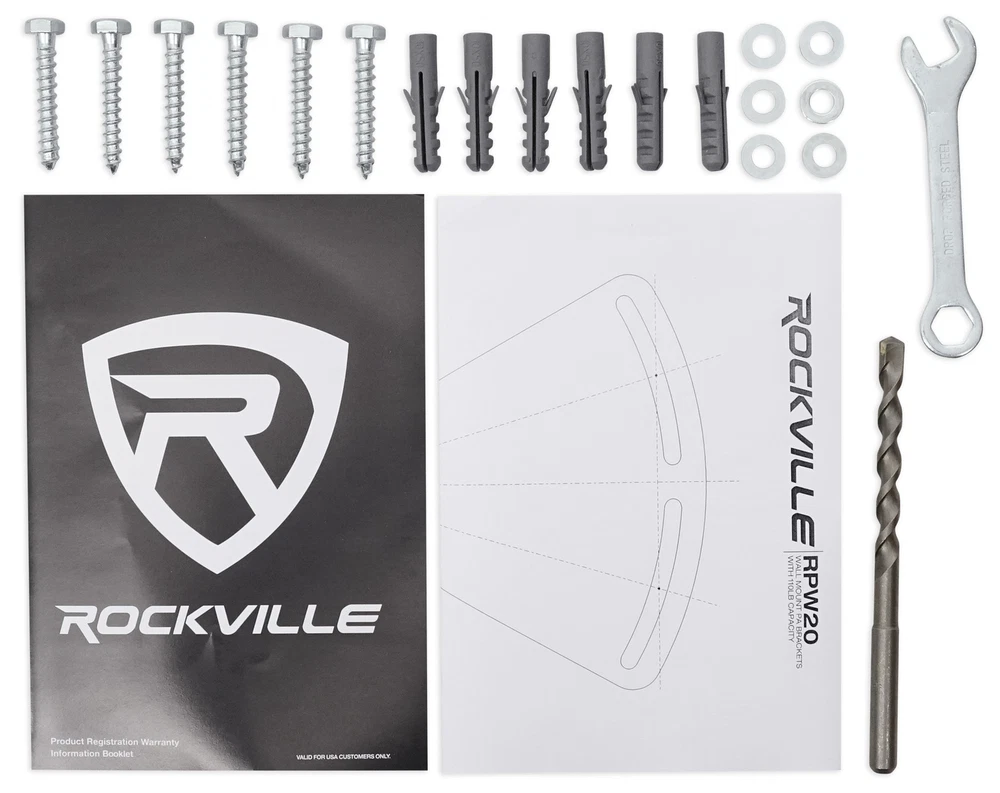 Car Audio & Video Pro Audio Marine Audio Lighting Karaoke Home/Portable Audio Pair Rockville Adjustable PA Wall Mount Brackets for JBL JRX215 Speakers Click Thumbnails to Enlarge Condition and Warranty Condition: BRAND NEW IN ORIGINAL PACKAGING Warranty: 1 YEAR MANUFACTURER Product Description In the Box: 2 X Wall brackets 6 X Carriage bolts 6 X M10 Washers 6 X Wall plugs 1 X 10mm Masonry drill bit 1 X 13mm Spanner Drilling template Features: Pair of Rockville RPW20 heavy duty adjustable wall mounting brackets for PA speaker installation Innovative base provides horizontal adjustment up to 55° left or right for optimal angle adjustments Adjustable speaker pole provides vertical adjustment up to 45° up or down for optimal listening angle Our brackets allows both horizontal and vertical adjustment Wall mounted speaker bracket sits 13“ off the wall allowing room to access the back of the speaker Perfect for concrete or brick If using with dry wall then you will need additional mounting hardware to reinforce the wall Load capacity: 110 lbs. each Extremely strong and heavy duty Product Dimensions: 13" x 8.7" x 8.8" Product Weight: 9.0 lbs. (per pair) Shipping weight: 10 lbs. (with packaging) Shipping dimensions: 14.2" 9.1" x 9.1" Return Policy AudioSavings Return Policy: At Audiosavings, we strongly believe in customer satisfaction and therefore offer free return shipping within 30 days of purchase on all items returned to us within the continental USA. Prior to returning merchandise, contact us and we will give you a return authorization # and a return label. You may return this item for a refund within 30 DAYS of purchase. Warranty Repair/Exchange Period: 1 YEAR If your item is defective or you want to return it for any reason within the first 30 days of when it was delivered to you; you have the following options: We will send you a pre-paid shipping label to replace the item for a brand new one. We will send you a pre-paid shipping label to exchange the item for another item of your choice. If the item you chose is more or less money we will work out the price difference with you. If you are returning a working item in used condition for a refund there will be a 20% used item fee deducted from your refund. All replacements and exchanges are free. Replacement/Processing Time: Your replacement or refund will process within 3-5 business days of when we receive the item. Please note items with physical damage un-related to shipping are not covered under warranty. Registered software cannot be returned. You MUST notify us within 48 hours if you receive an item that was damaged during shipping. Process for returning items Please email us with your eBay user ID, Item code / model #, Condition of the item, and the reason for your return. Please also indicate whether you would like a replacement, an exchange, or a refund. We will supply you with a reference number (RMA #) to put on the package which will ensure quick processing of your return. All returns require a RMA# to be returned back to our facility. Item Code: RPW20 JBL JRX215 Home / About Us / Contact Us / Returns / FAQ's Copyright © 2016 Audio Savings , All rights reserved. | eBay Template Design