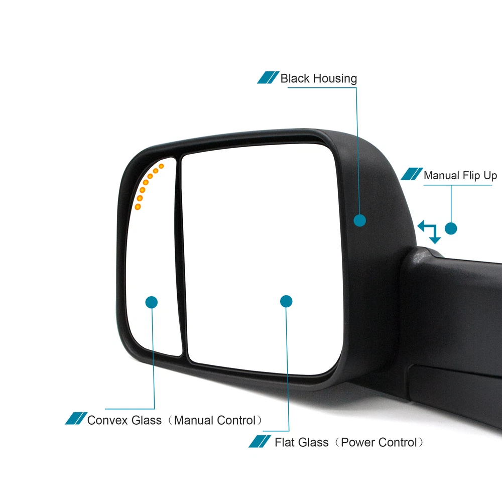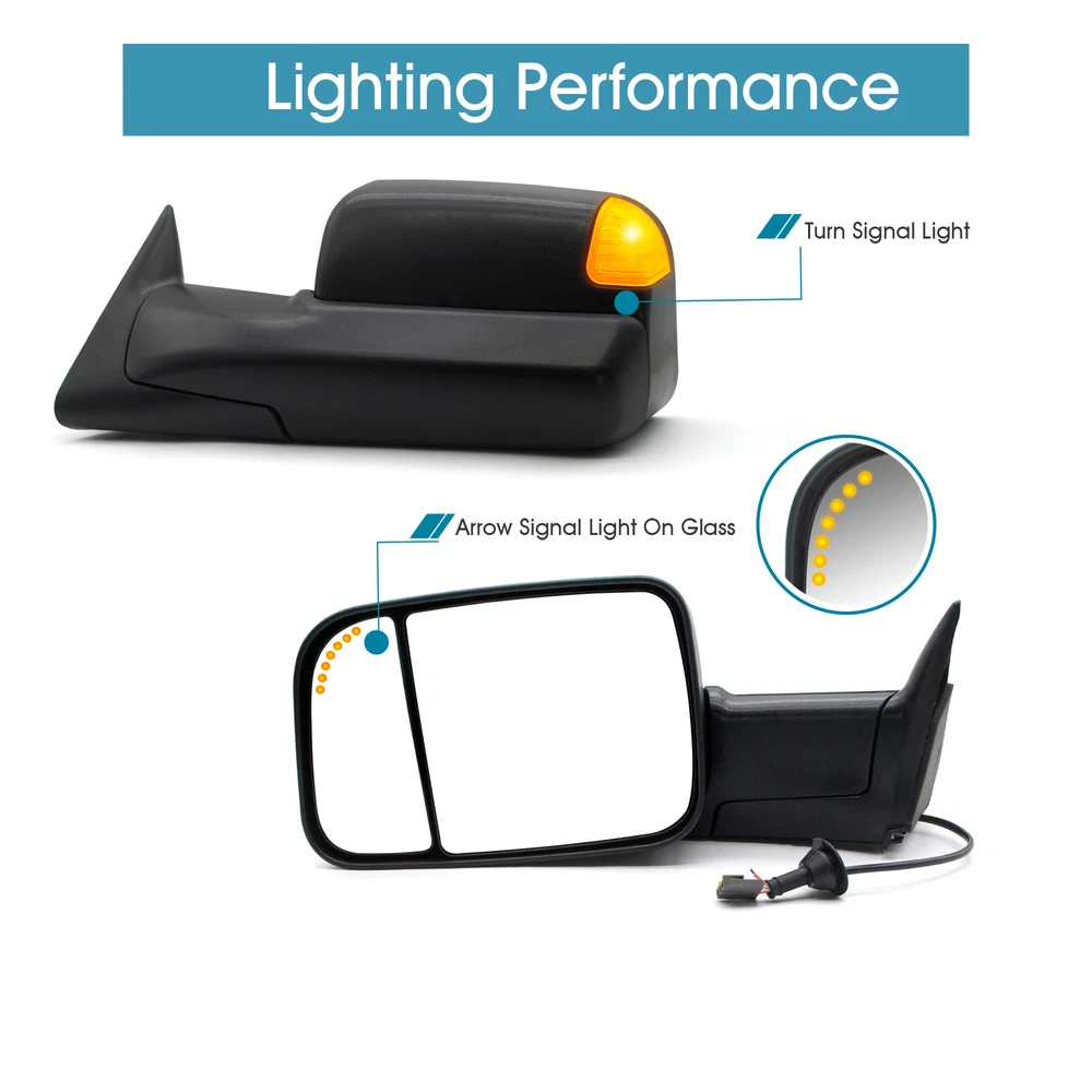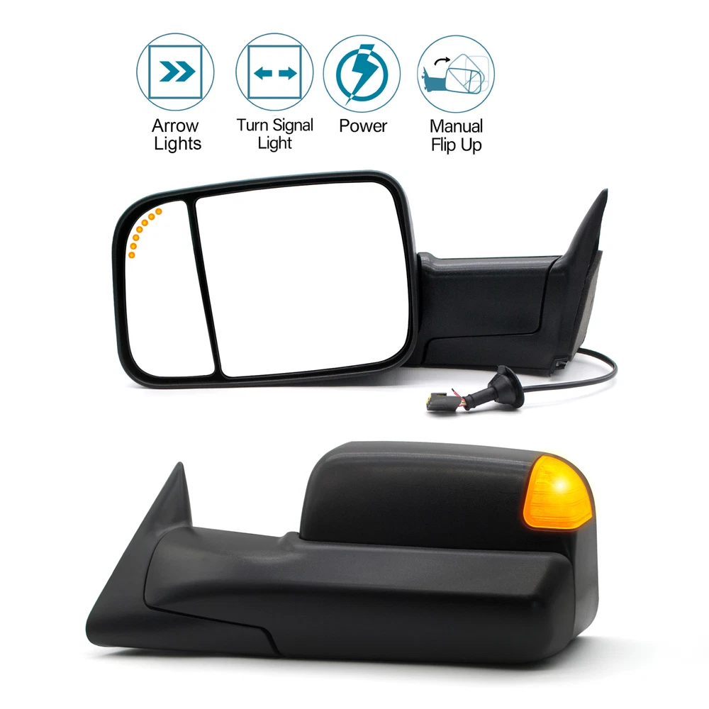 Product Description Detailed description of the product Specifications : Condition New Number Of Pieces 2 Fold Away Manual Fold Warranty 1 Year Color Black Location Passenger Right + Driver Left Side Features: Power Adjustment Mirrors LED Turn Signal Light (reserved,need to wire realize) Arrow Light On Glass (reserved,need to wire realize) Manual Extendable Arm Extend the length of the towing mirror 24" Fits: 1994 1995 1996 1997 Dodge Ram 1500 2500 3500 Truck Tow Mirrors Note : These mirrors will only work properly on vehicles with these exact options. If your vehicle does not have the options listed, these mirrors may not function properly. No installation guide. Professional installation is highly recommended. In the event the item should fail due to manufacturing defects during intended use, we will replace the part by free.(1 Year Warranty) If you encounter any problems, please contact us and we will provide you with solutions. Thank you! Payment Shipping Returns Contact Us PayPal is our preferred method of payment for all of our eBay sales. For customer service please contact us via eBay MessagesImmediate payment via PayPal is required for all Buy It Now items. If you need special arrangements, please contact us through eBay messages. Generally, all goods will be shipped within 24 hours after the payment on the working day (except for goods sent from China). If you want to cancel the order or change the address, please contact us within 6 hours after payment, otherwise we will not be responsible. It takes 3-5 working days for logistics and transportation to be delivered. If you are not satisfied with your purchase, you may return it, for a refund or replacement - subject to the following: Contact us through eBay messages or the returns link to receive a Returned Merchandise Authorization (RMA) number to ensure proper handling of the return and/or replacement. In order to be eligible for a full refund, less shipping expenses, your returned merchandise must be in its original new condition, as shipped, with all packaging, manuals, and paperwork intact and unaltered. Items which have been opened are returnable, however they will carry a restocking fee. If that product is returned for a refund, the shipping expenses incurred, will be deducted from the refund. If an item is refused, the carrier bills us for shipping both ways, and these expenses incurred on your behalf need to be deducted from your refund If you have a question about a part you should contact us before buying.And If you have any questions after purchase, please contact us and we will provide a satisfactory solution. Payment PayPal is our preferred method of payment for all of our eBay sales. For customer service please contact us via eBay MessagesImmediate payment via PayPal is required for all Buy It Now items. If you need special arrangements, please contact us through eBay messages. Shipping Generally, all goods will be shipped within 24 hours after the payment on the working day (except for goods sent from China). If you want to cancel the order or change the address, please contact us within 6 hours after payment, otherwise we will not be responsible. It takes 3-5 working days for logistics and transportation to be delivered. Returns If you are not satisfied with your purchase, you may return it, for a refund or replacement - subject to the following: Contact us through eBay messages or the returns link to receive a Returned Merchandise Authorization (RMA) number to ensure proper handling of the return and/or replacement. In order to be eligible for a full refund, less shipping expenses, your returned merchandise must be in its original new condition, as shipped, with all packaging, manuals, and paperwork intact and unaltered. Items which have been opened are returnable, however they will carry a restocking fee. If that product is returned for a refund, the shipping expenses incurred, will be deducted from the refund. If an item is refused, the carrier bills us for shipping both ways, and these expenses incurred on your behalf need to be deducted from your refund Contact Us If you have a question about a part you should contact us before buying.And If you have any questions after purchase, please contact us and we will provide a satisfactory solution. Related Products Pair Tow Mirrors Manual For 2014 2015 Dodge Ram 1500 2500 3500 4500 Pickup Pair Towing Mirrors Power Heated Turn Signal For 2009-2018 Dodge Ram 1500 2500 Pair Towing Mirrors Power Heated For 2009-2018 Dodge Ram 1500 2500 3500 Black Pair Towing Mirrors Manual Folding Fits 2003-2007 Ram 1500 2003-08 Ram 2500 3500 Pair Tow Mirrors Manual Fold Fits 94-01 Dodge Ram 1500 2500 3500 Left+Right Side Pair Tow Mirrors Power Heated Turn Signal For 1999 2000 2001 Dodge Ram 2500 3500 Heated NO √ √ NO NO NO Power NO √ √ NO NO √ Turn Signal Light NO √ NO NO NO √ temperature sensor NO √ √ NO NO NO Puddle Light NO √ √ NO NO NO Arrow Signal Light NO NO √ NO NO √ housing color Black Black Manual Black Black Black folding Manual Manual Manual Manual Manual Manual fit for 09-18 Ram 1500 2500 3500 4500 5500 09-18 Ram 1500 2500 3500 4500 5500 09-18 Ram 1500 2500 3500 4500 5500 02-08 Ram 1500 03-09 Ram 2500 3500 94-01 Ram 1500 2500 3500 98-01 Ram 1500 2500 3500 [22 Pin Plug] On Dec 4, 2024 at 11:10:55 PST, seller added the following information: