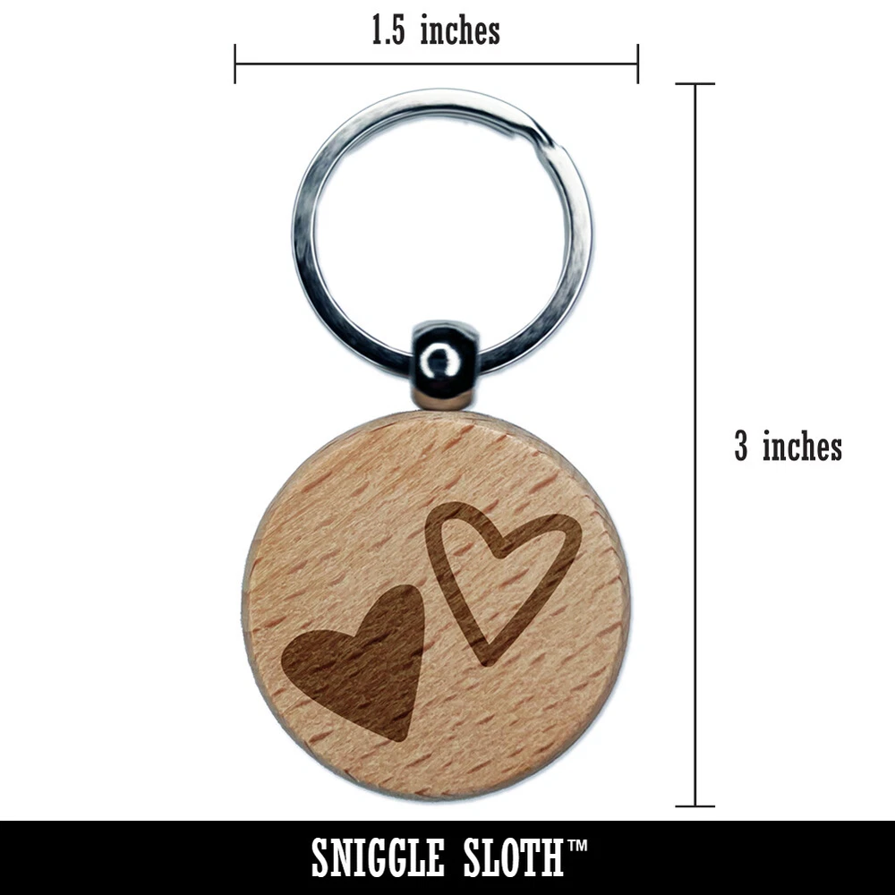 Pair of Hearts Love Engraved Wood Round Keychain Tag Charm