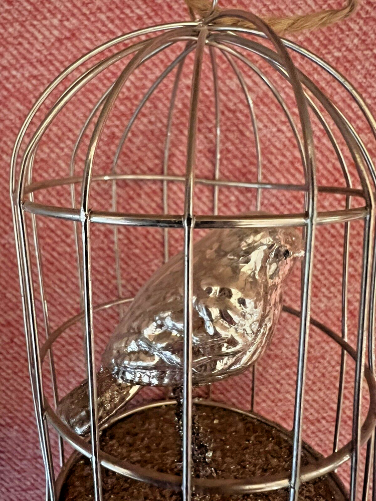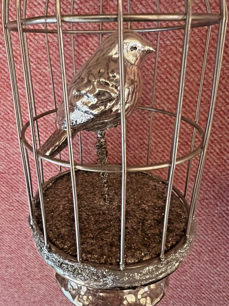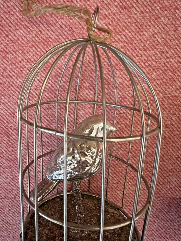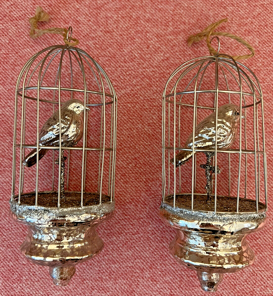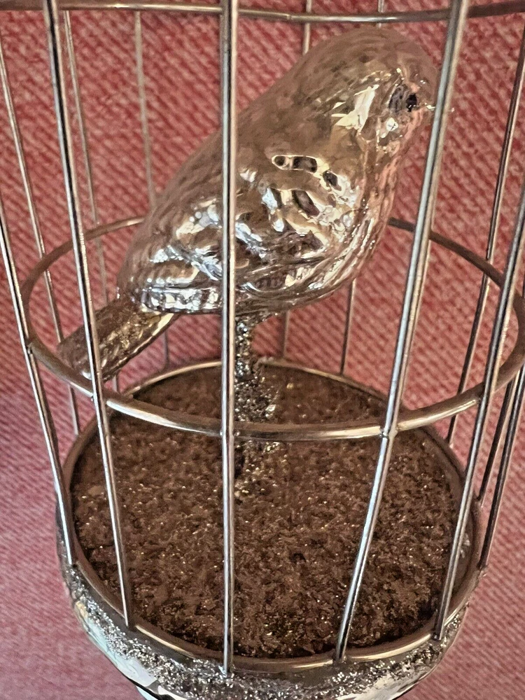 Pair Of Silver Mercury Style Glass Bird In Metal Cage Glitter Accent Christmas Ornament Bird In Cage Ornament. Silver, Metal And Mercury Glass Bird .The Cage With Glitter And Bottom Accents. Unmarked Measures About 17.5 cm Tall, 7.5 cm Diameter. Multiple Delivery Options Are Available On Request. Please note that all measurements are approximate. Please study the pictures carefully and ask any questions before bidding. The photos are an essential part of the description. I try to honestly and accurately describe the items. Please do not leave neutral or negative feedback before contacting me as most issues are easily solvable. The P&P costs are precisely calculated and I will return any extra charge. I combine P&P for multiple purchases. Thanks for looking.