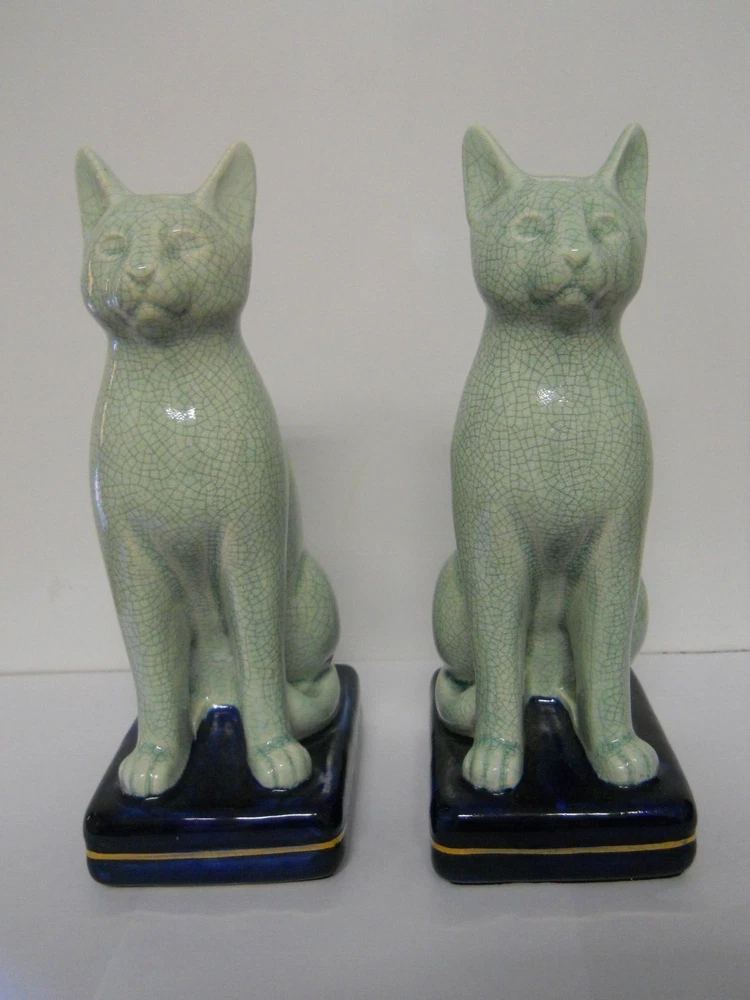 You are bidding on: Pair of Vintage Japanese Ceramic Staffordshire Style Cats by Ibrasco Japan Description Condition: In vintage condition. This is a Pair of Vintage Japanese Ceramic Staffordshire Style Cats by Ibrasco Japan These cats stand at 8" tall. The bases measure 3" x 4" These are made in Japan ***************************************************************************************************** PLEASE READ: I buy mostly estates, close outs, shelf pulls, and auction items. As the history of the item is not always known. I will describe all of my items listed to the best of my ability, if there are any flaws to the item it will be noted in the listing and photos of the flaw shown. At times I may miss a flaw, as I am only human. Please contact me and I will make it right and make sure that you are happy with you interaction and purchase from Big Man Tim. See photos for details and ask all questions before purchasing. "FREE SHIPPING" Thank you for shopping in my store. Check out the other items in my eBay Store! HAPPY BIDDING 050324/TM warehouse