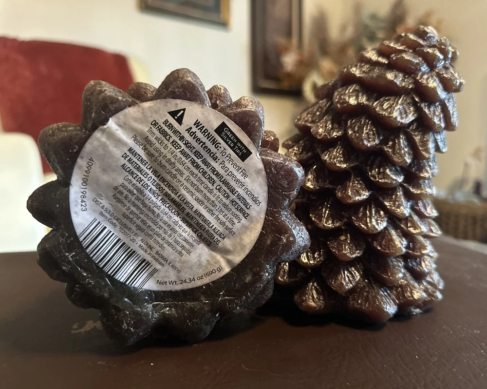 Pair of Whimsical Tree Pinecone Christmas Wax Accent Candles Condition: New with Tags Scent: Unscented Measurements: Candle 1 [8” x 4” x 4”] / Candle 2 [6.5” x 4” x 4”] Materials: Wax Origin: Made in Vietnam If you have any questions concerning this item, please feel free to contact me. ALDI offers these whimsical asymmetrical pinecone/ tree wax accent candles. Perfect for setting the mood in autumn with that country farmhouse vibe that can carry the decor through the Christmas season and winter. All measurements are approximate. Color may vary due to lighting conditions. Tags: Candles, Pillar Candles, Home Decor, Autumn Decor, Winter Decor, Whimsical, Holidays, Christmas, Spruce, Cottagecore, Farmhouse, Lagenlook, Country, Rustic